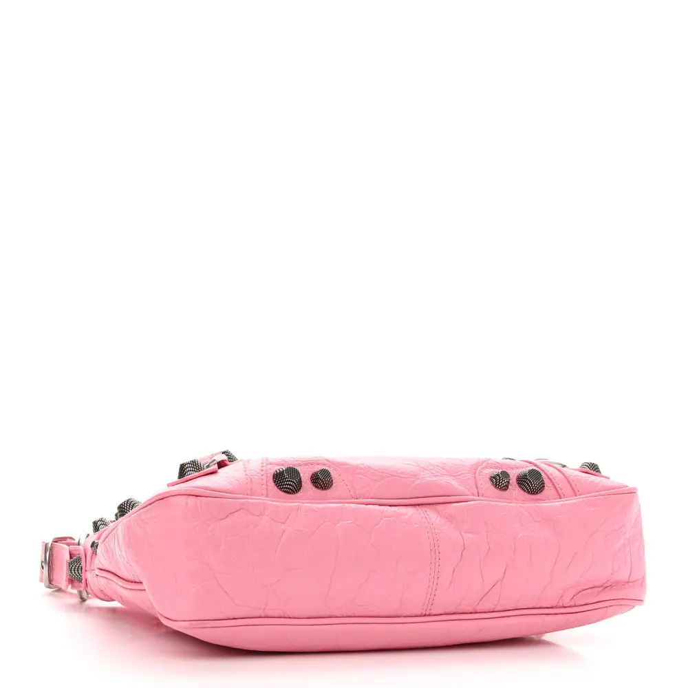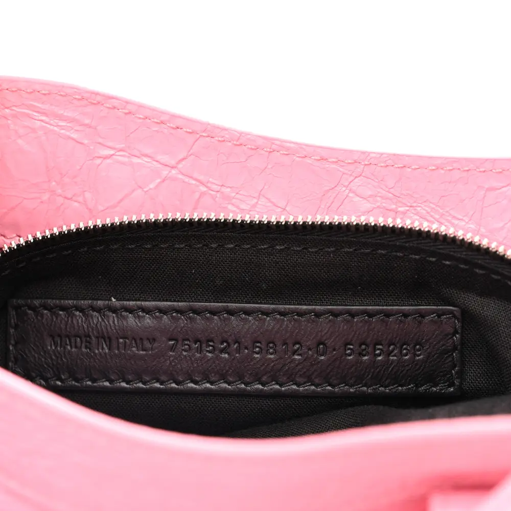 BALENCIAGA MINI NEO CAGOLE SHOULDER BAG CANDY PINK AGNEAU ARENA LEATHER SILVER HARDWARE