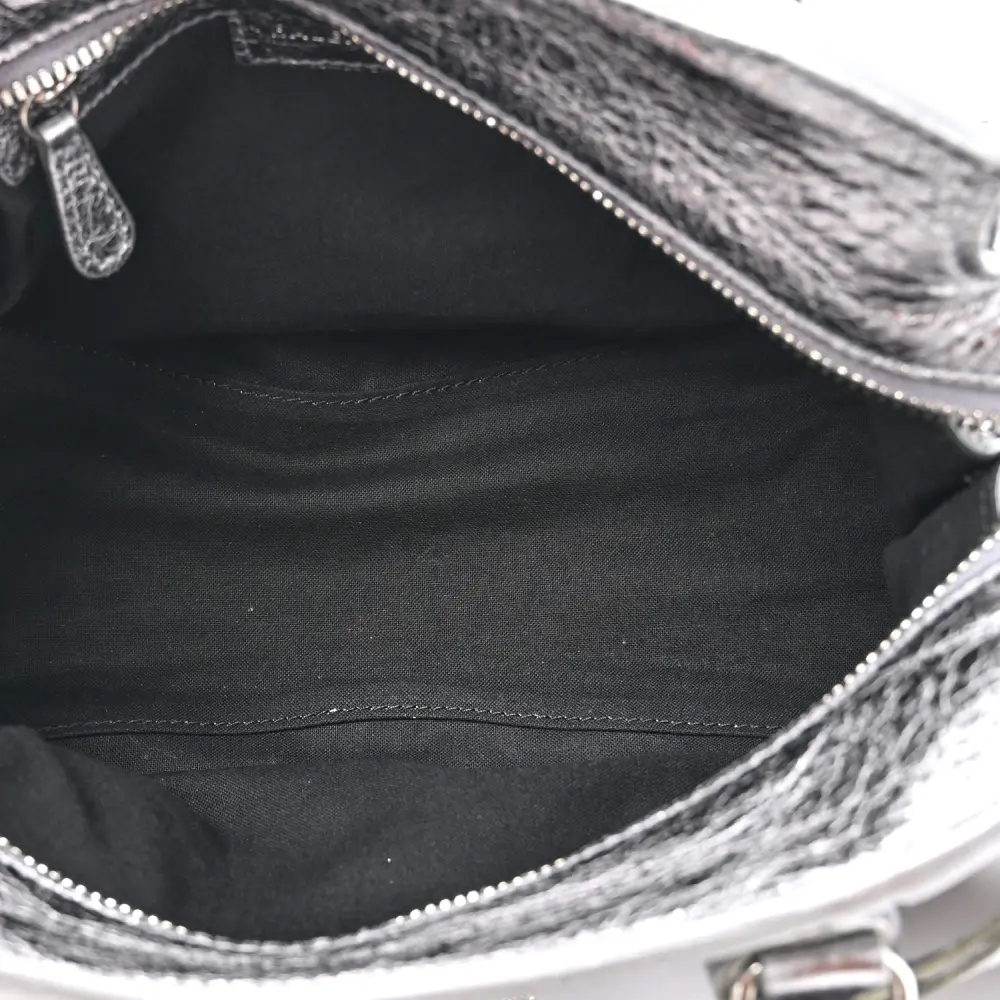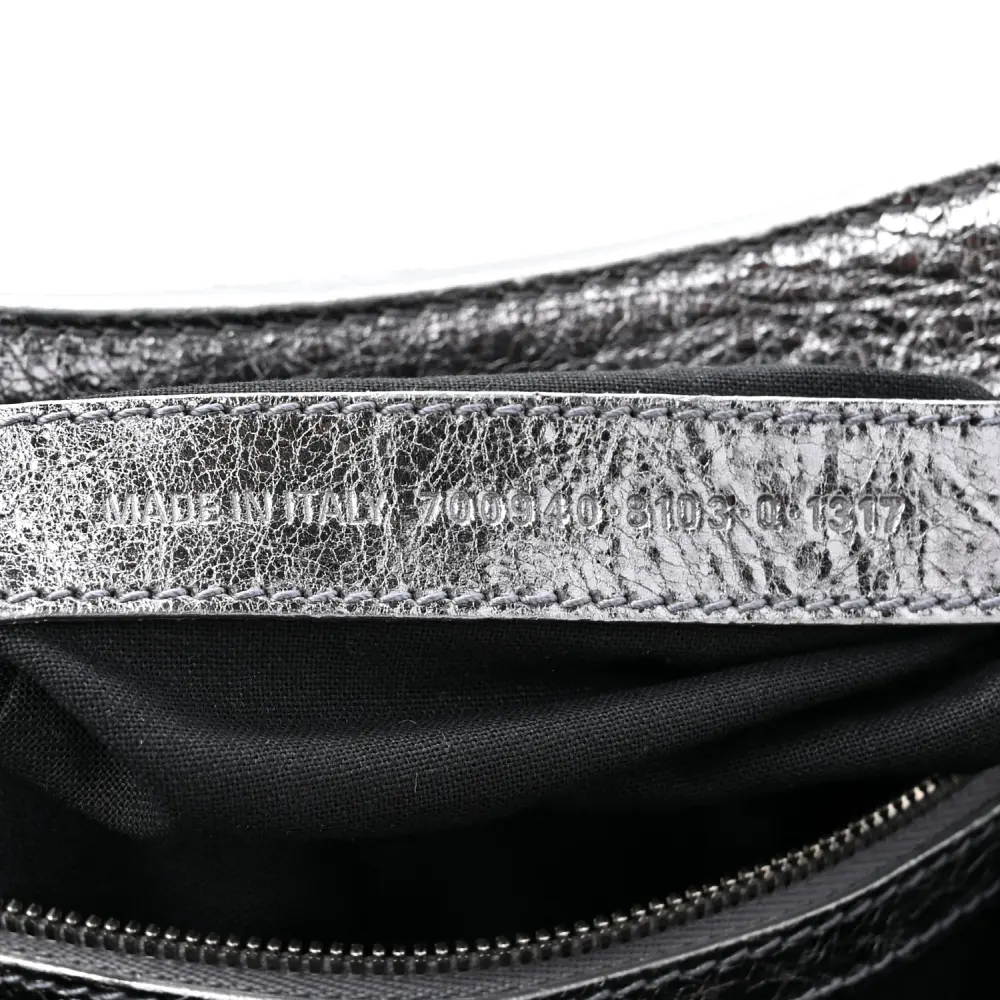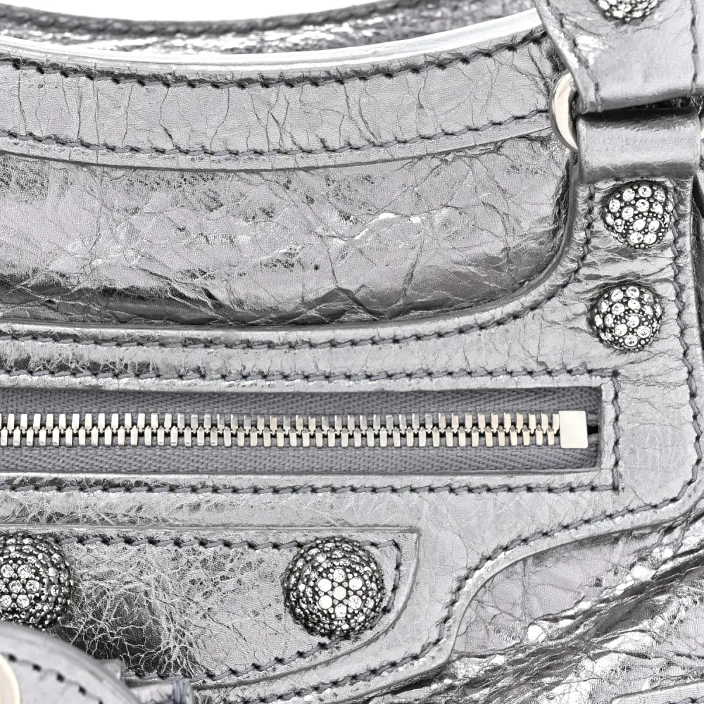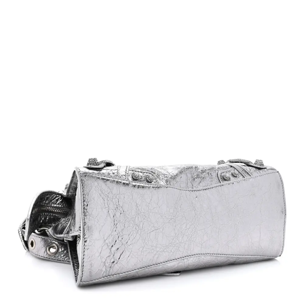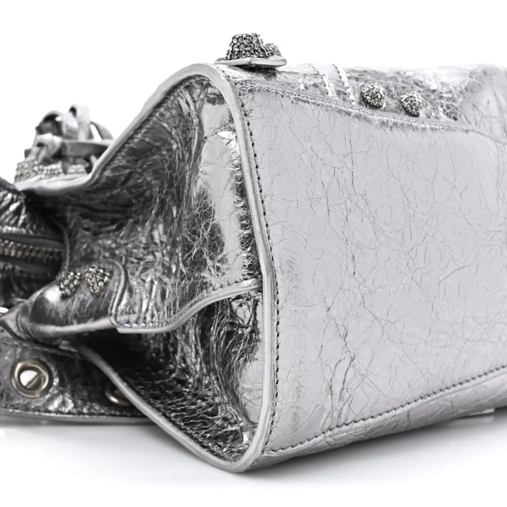 BALENCIAGA XS CRYSTAL NEO CAGOLE HANDBAG SILVER AGNEAU ARENA LEATHER SILVER HARDWARE