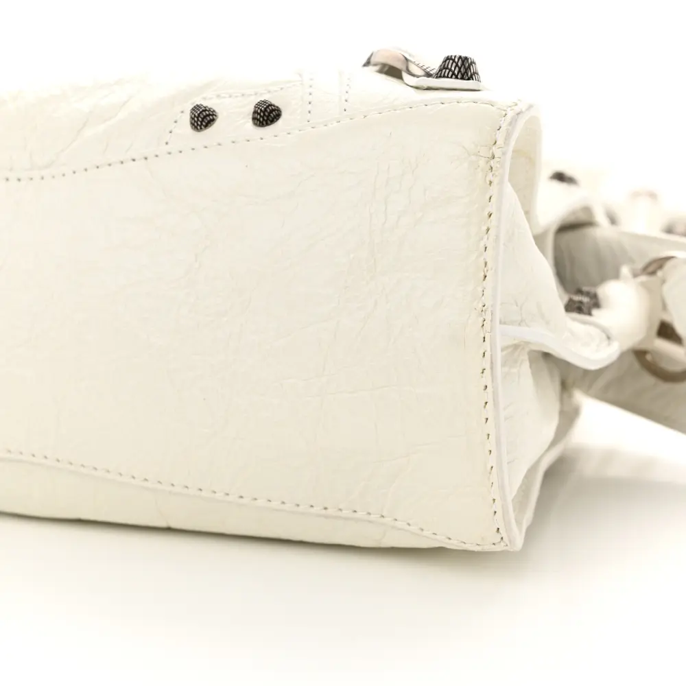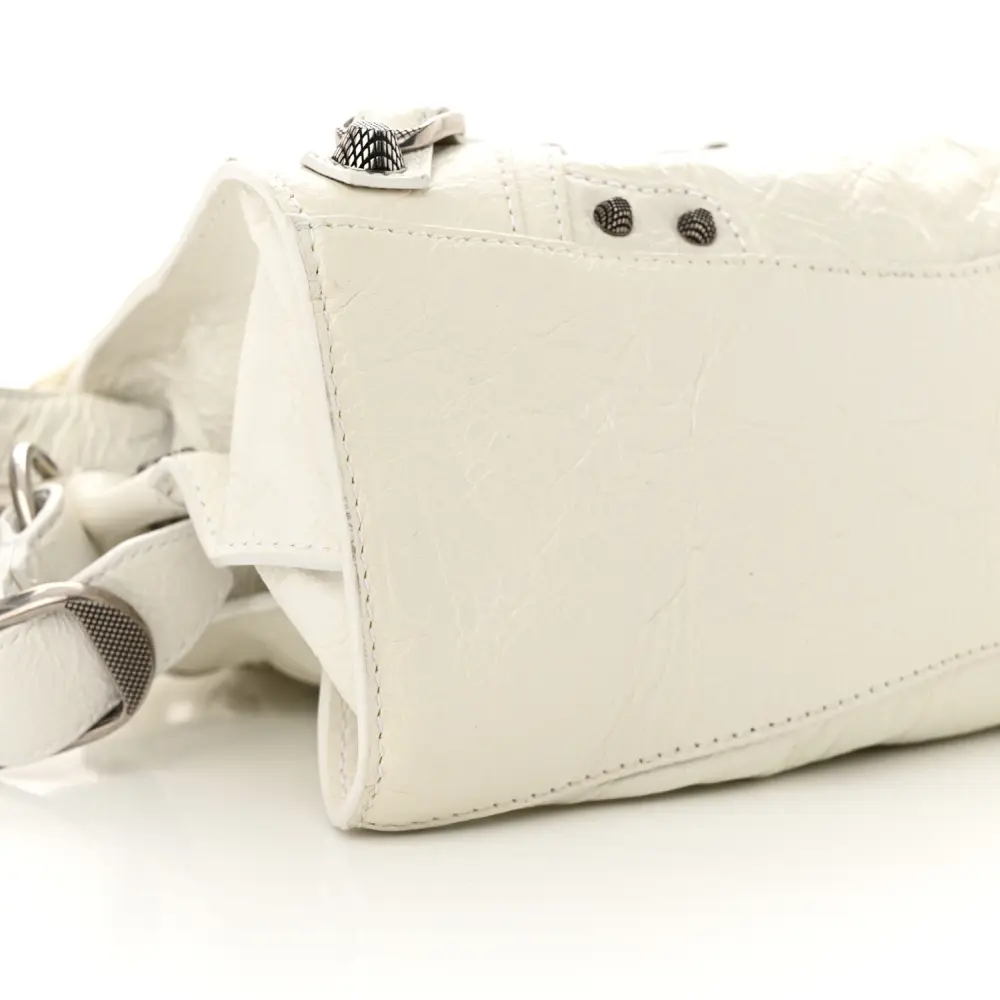 BALENCIAGA XS NEO CAGOLE HANDBAG OPTIC WHITE AGNEAU ARENA LEATHER SILVER HARDWARE