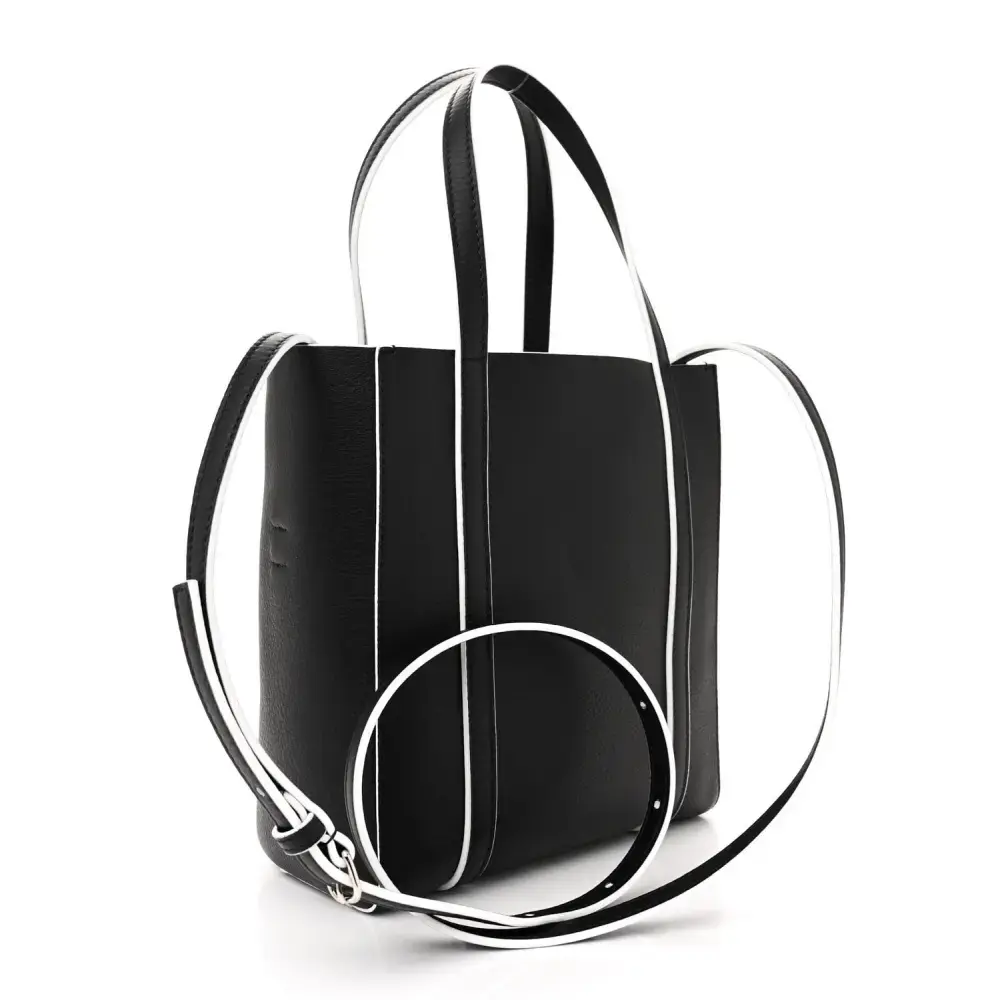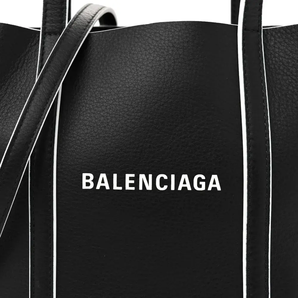 BALENCIAGA XXS EVERYDAY TOTE BLACK/WHITE SMOOTH CALFSKIN LEATHER LOGO DOUBLE SIDED