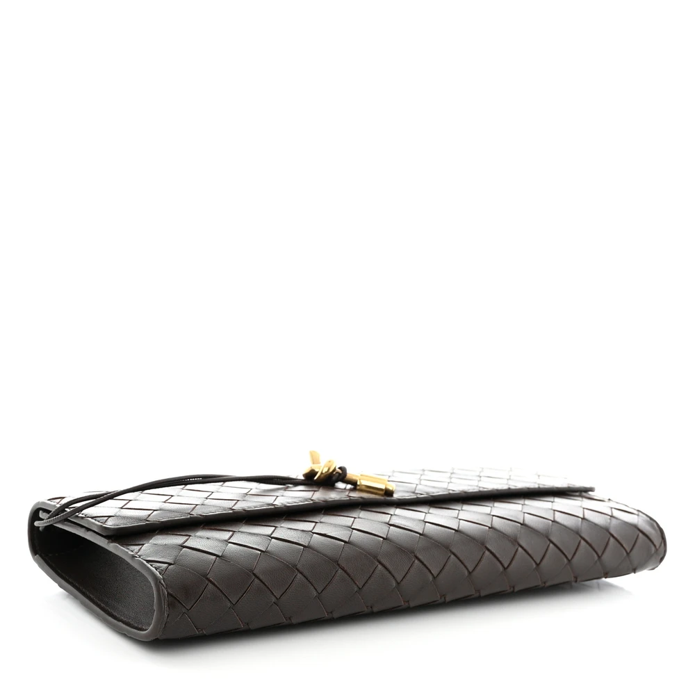 BOTTEGA VENETA LONG INTRECCIATO ANDIAMO TOP HANDLE CLUTCH FONDANT NAPPA LEATHER GOLD HARDWARE