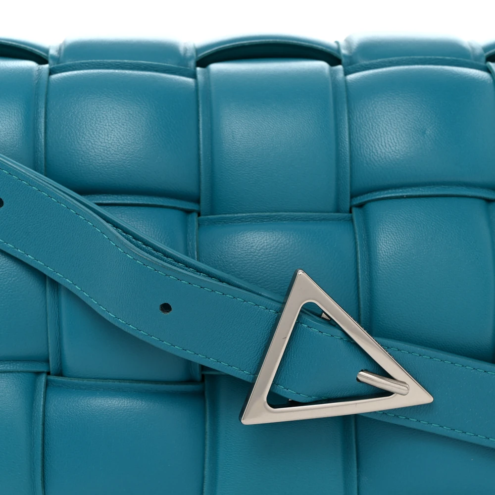 BOTTEGA VENETA MAXI INTRECCIO PADDED CASSETTE CROSSBODY BAG BLASTER NAPPA LEATHER SILVER HARDWARE
