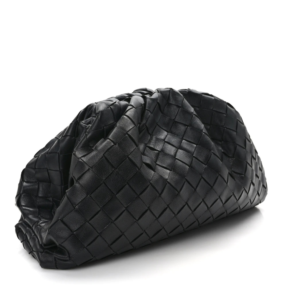BOTTEGA VENETA MEDIUM INTRECCIATO TEEN POUCH BLACK NAPPA LEATHER