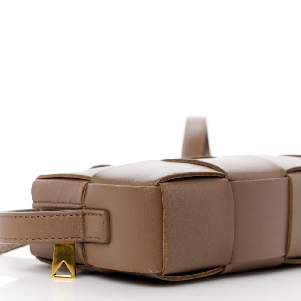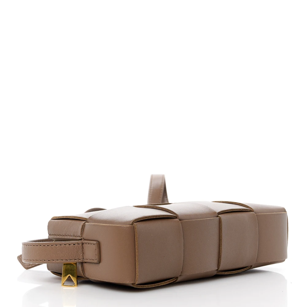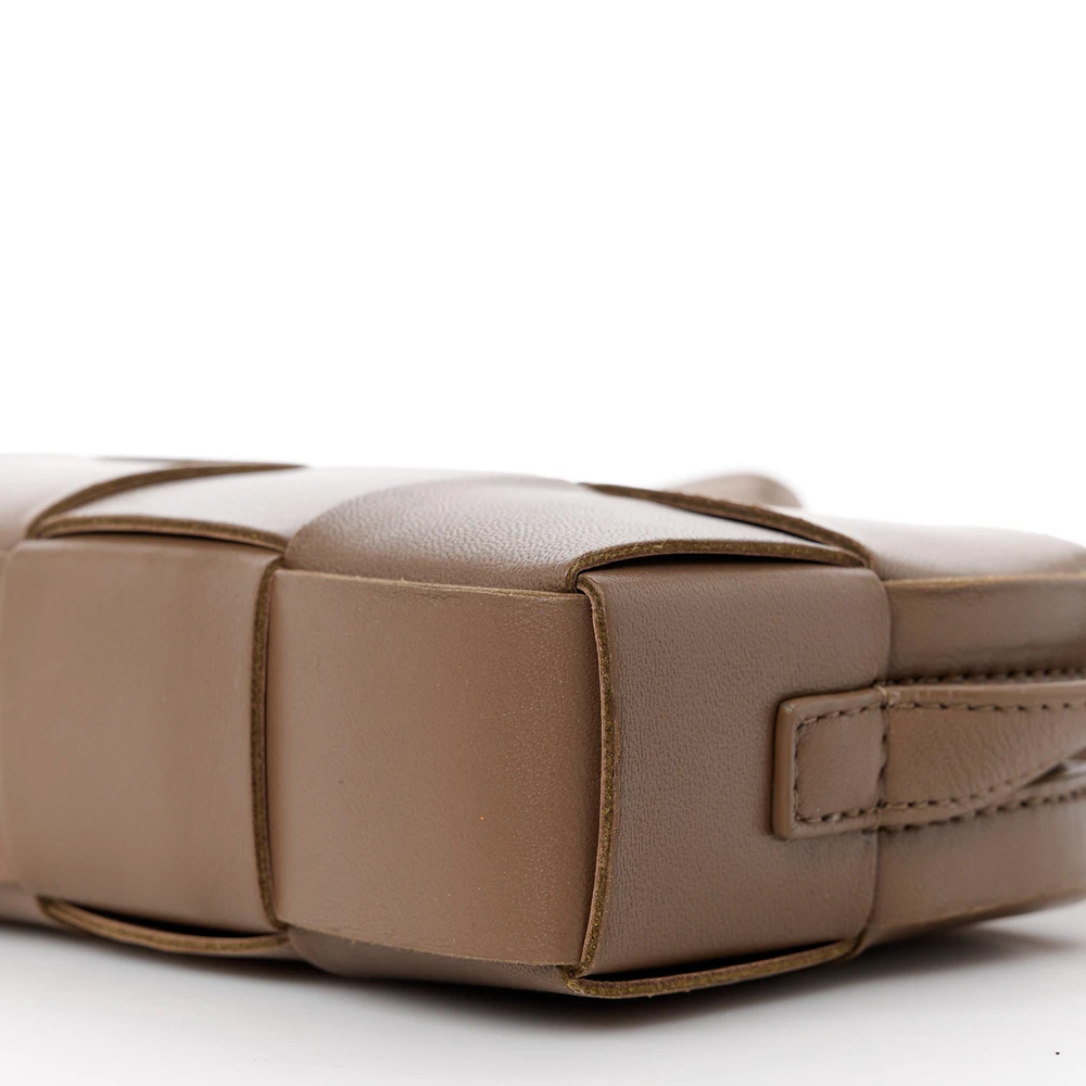 BOTTEGA VENETA MINI INTRECCIO CASSETTE PHONE POUCH CROSSBODY BAG MARRONE LAMBSKIN LEATHER