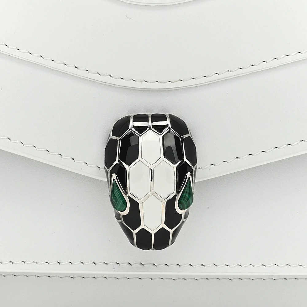 BVLGARI MEDIUM SERPENTI FOREVER EAST WEST SHOULDER BAG OPAL GREY CALFSKIN LEATHER SILVER HARDWARE