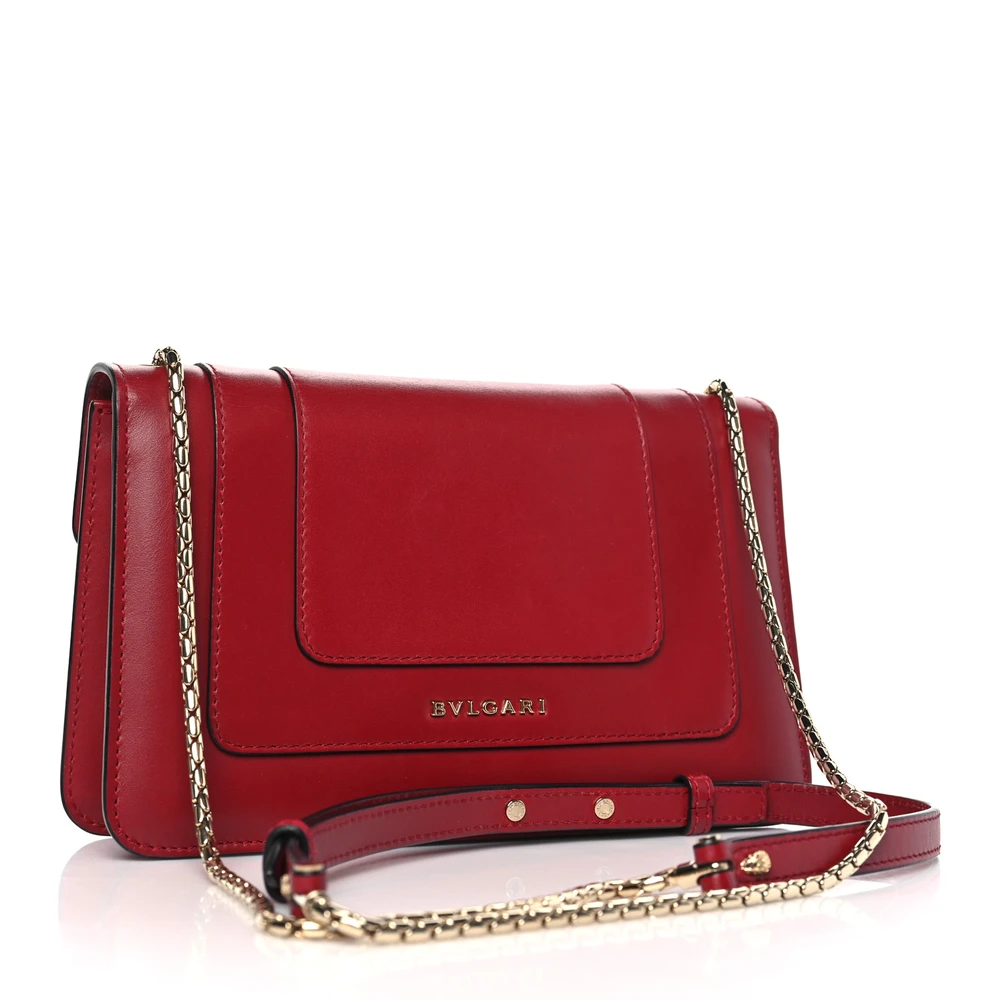 BVLGARI MINI SERPENTI FOREVER CROSSBODY BAG RUBY RED CALFSKIN LEATHER GOLD HARDWARE
