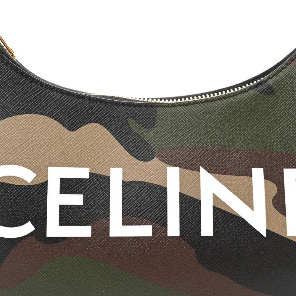 CELINE MEDIUM AVA LOGO TRIOMPHE SHOULDER BAG KHAKI CAMOUFLAGE CANVAS & CALFSKIN LEATHER GOLD HARDWARE