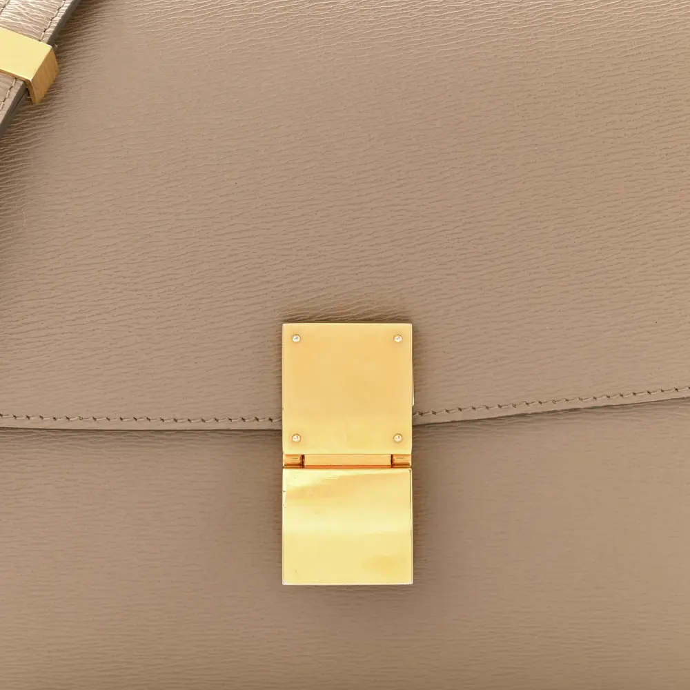 CELINE MEDIUM CLASSIC BOX FLAP BAG TAUPE LIEGE CALFSKIN LEATHER GOLD HARDWARE