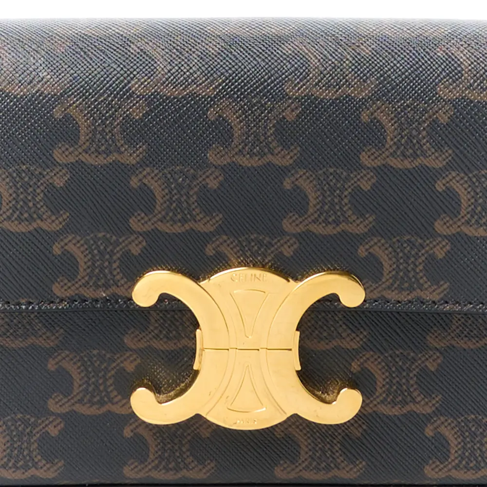 CELINE MEDIUM TRIOMPHE SHOULDER BAG TAN CANVAS & CALFSKIN LEATHER GOLD HARDWARE