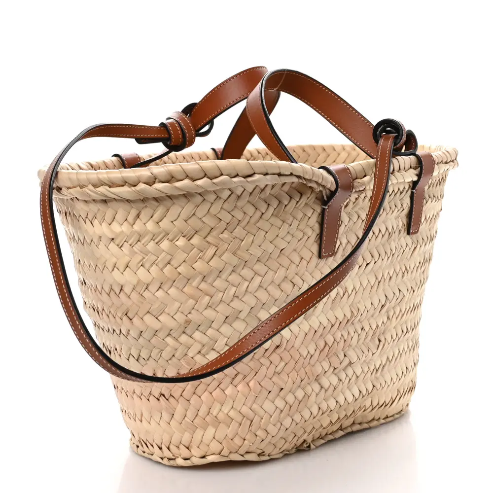 CELINE MEDIUM TRIOMPHE TEEN PANIER TAN PALM LEAF & CALFSKIN LEATHER GOLD HARDWARE