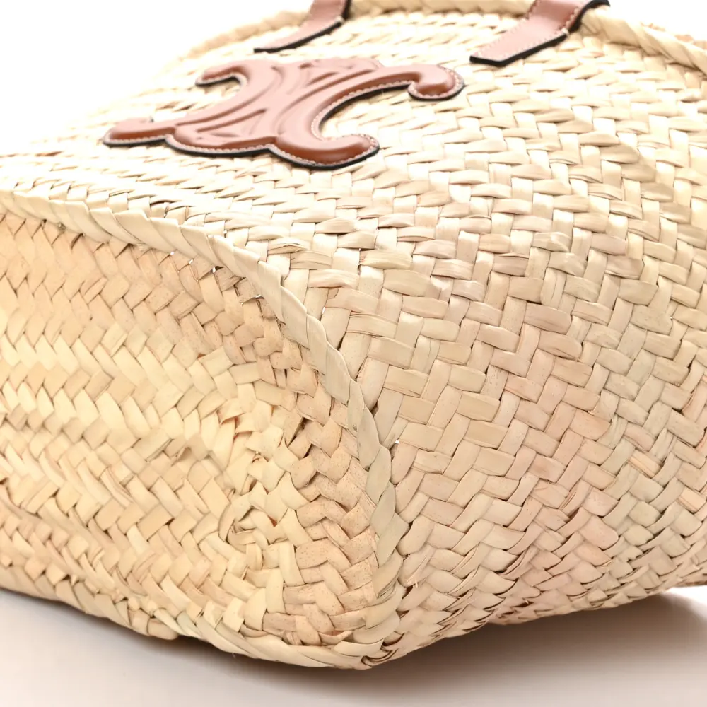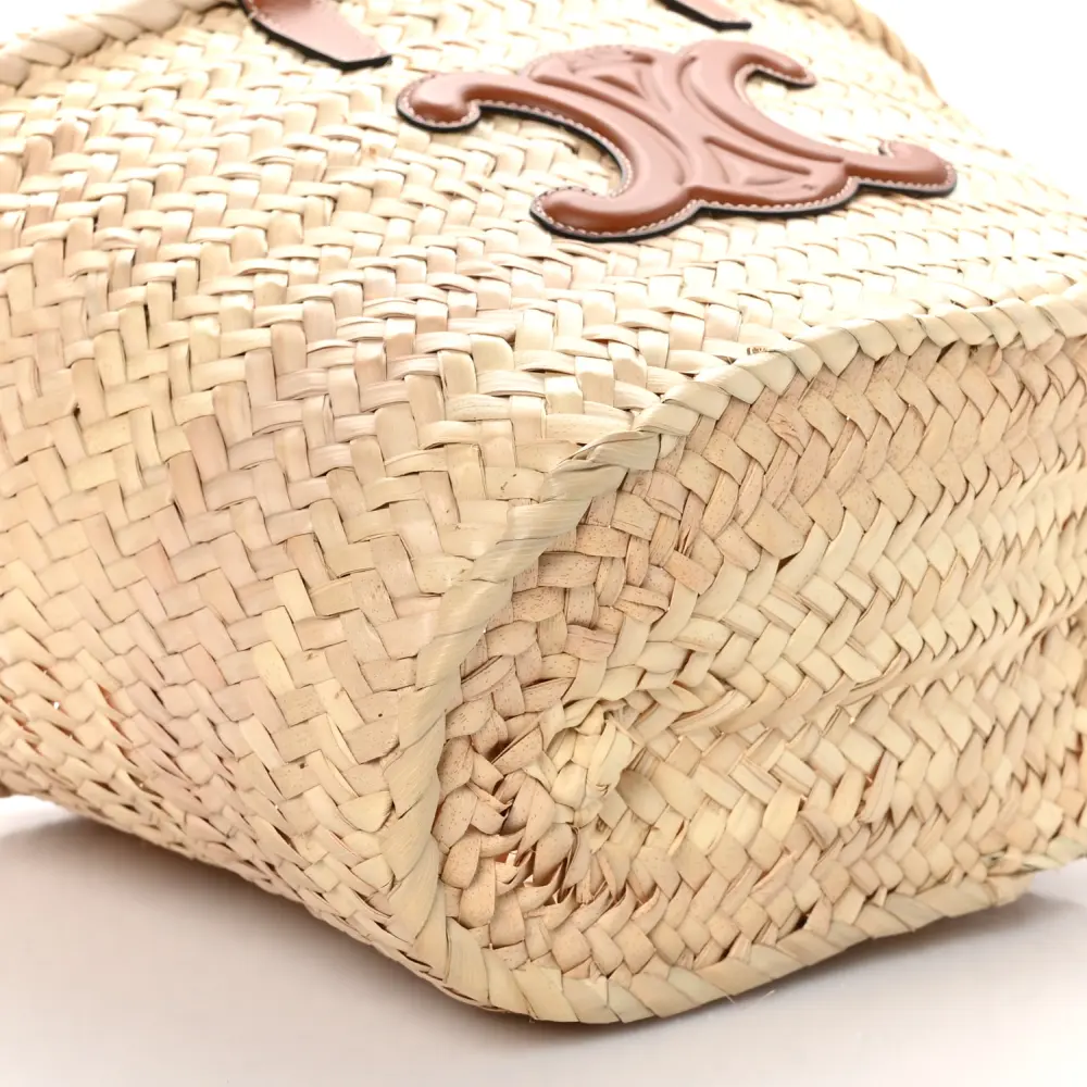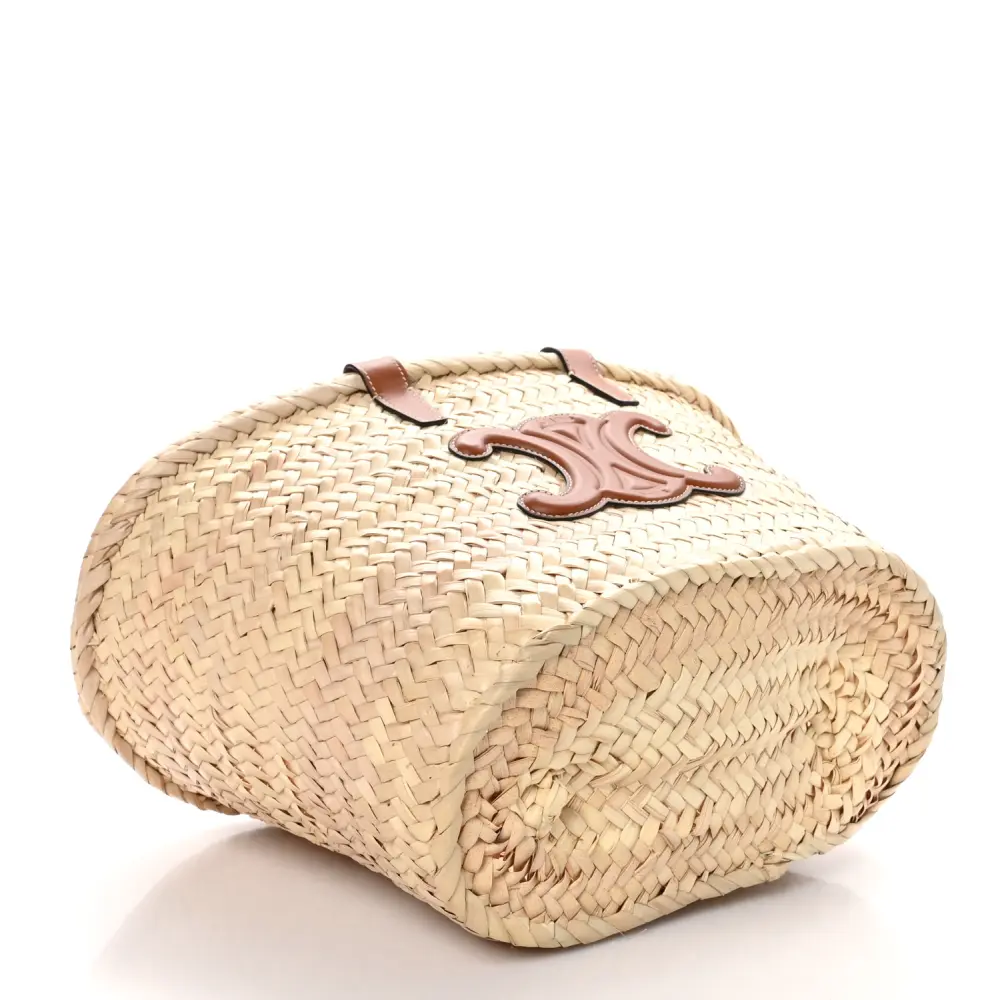 CELINE MEDIUM TRIOMPHE TEEN PANIER TAN PALM LEAF & CALFSKIN LEATHER GOLD HARDWARE
