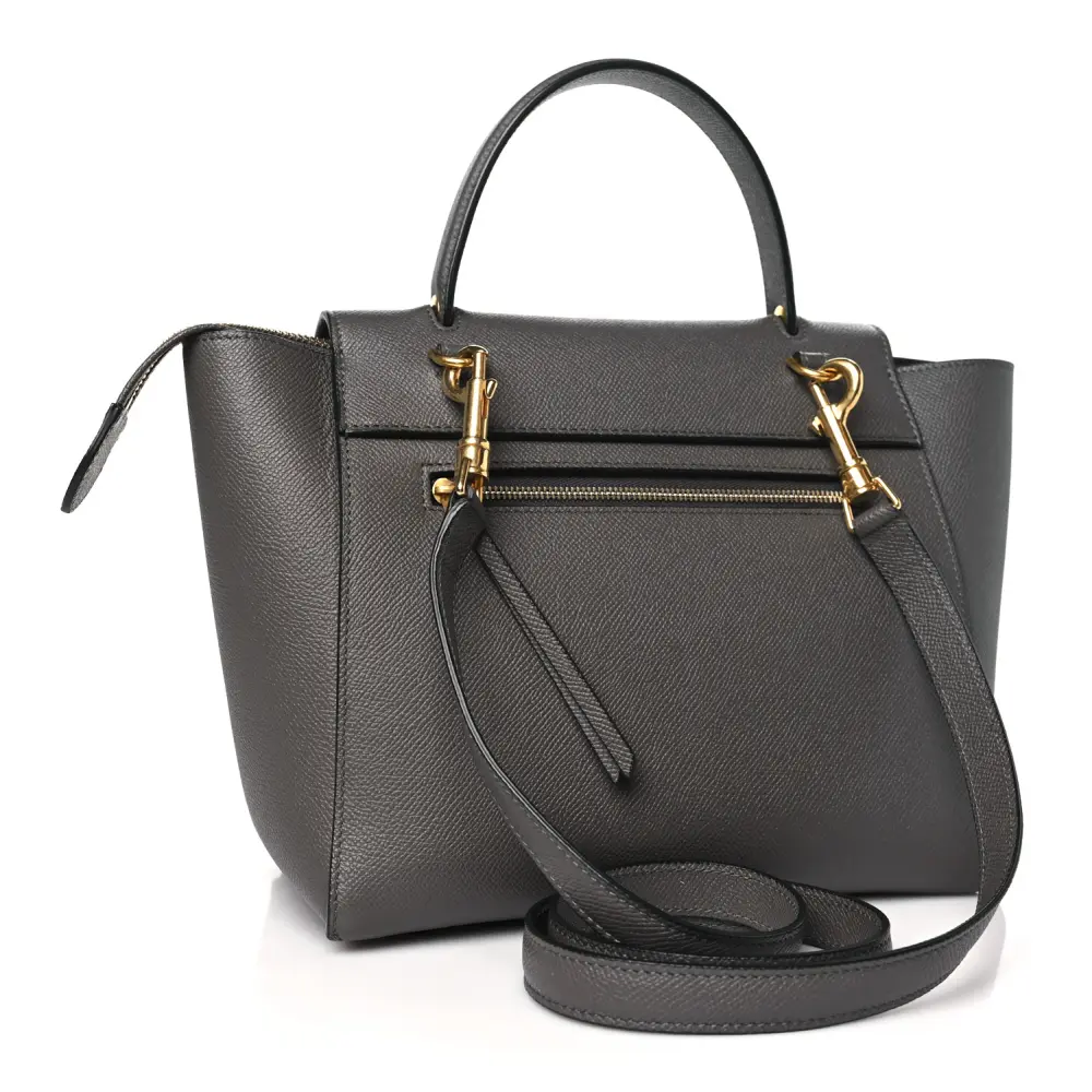 CELINE MICRO BELT BAG GREY GRAINED CALFSKIN LEATHER GOLD HARDWARE