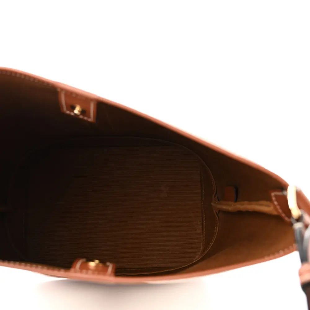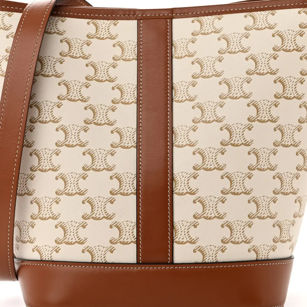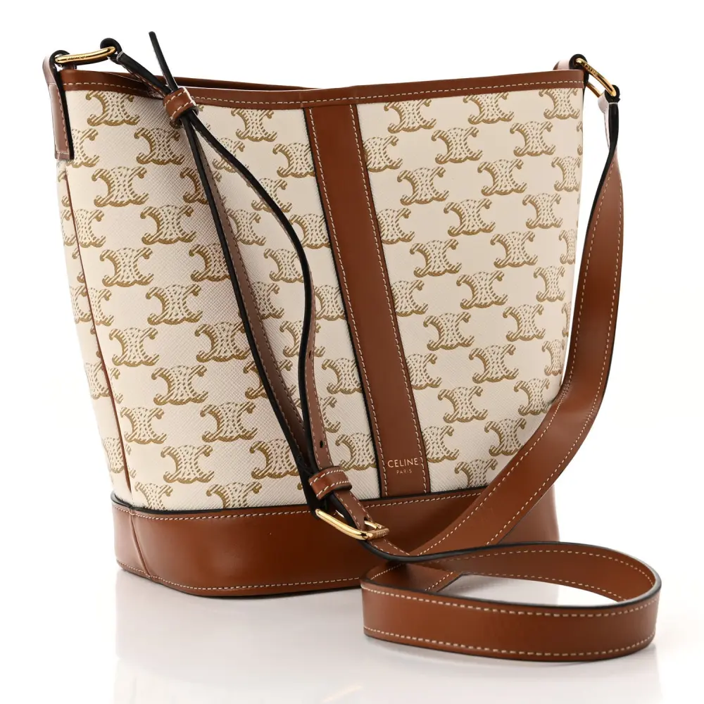 CELINE SMALL BUCKET BAG WHITE TRIOMPHE CANVAS & CALFSKIN LEATHER GOLD HARDWARE