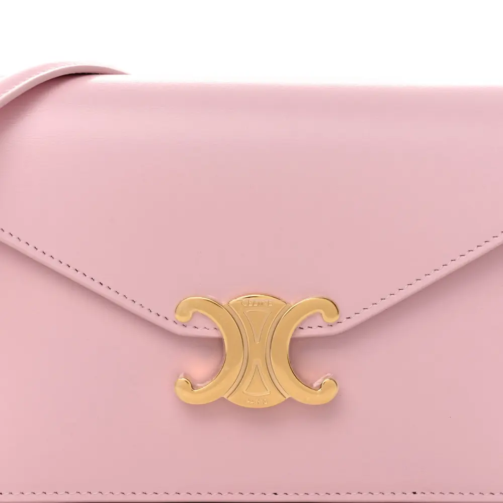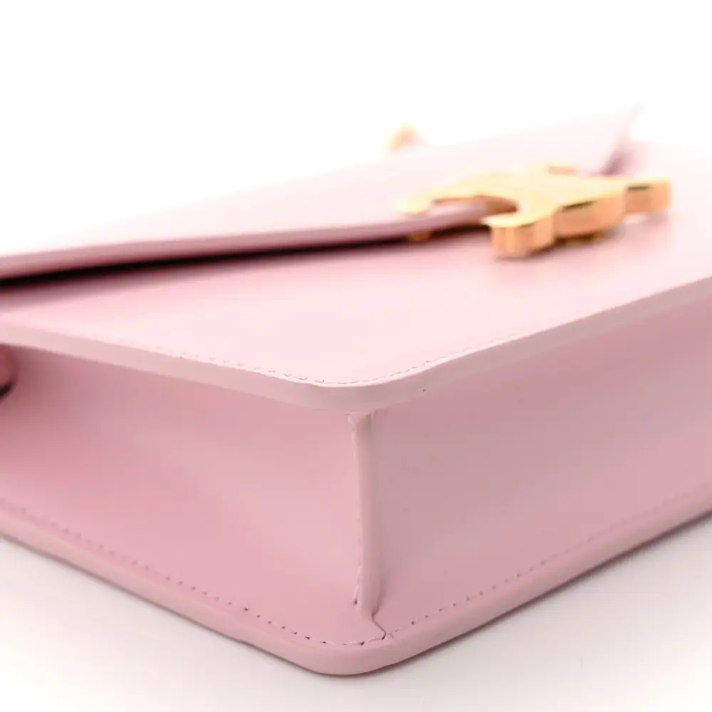 CELINE TRIOMPHE MARGO WALLET ON CHAIN PASTEL PINK SHINY CALFSKIN LEATHER GOLD HARDWARE