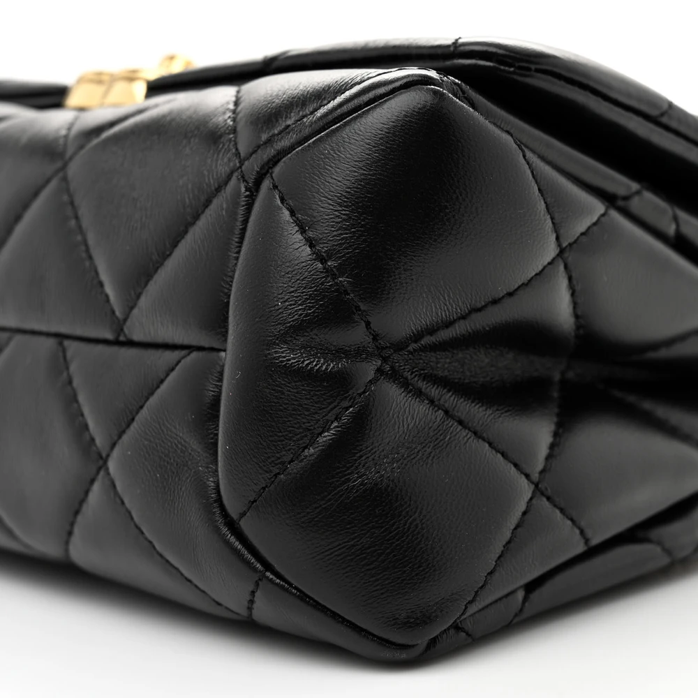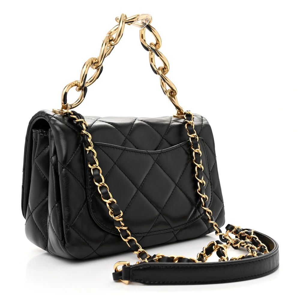 CHANEL COLOR MATCH FLAP SMALL BLACK QUILTED LAMBSKIN LEATHER GOLD HARDWARE