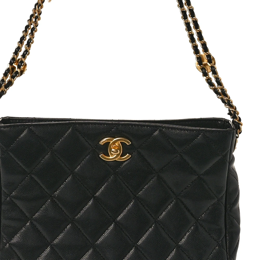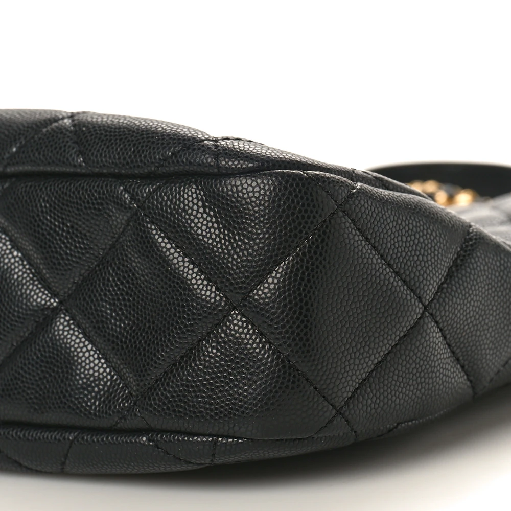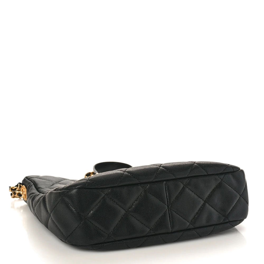 CHANEL TWIST YOUR BUTTONS HOBO MEDIUM BLACK QUILTED CAVIAR LEATHER AGED GOLD HARDWARE