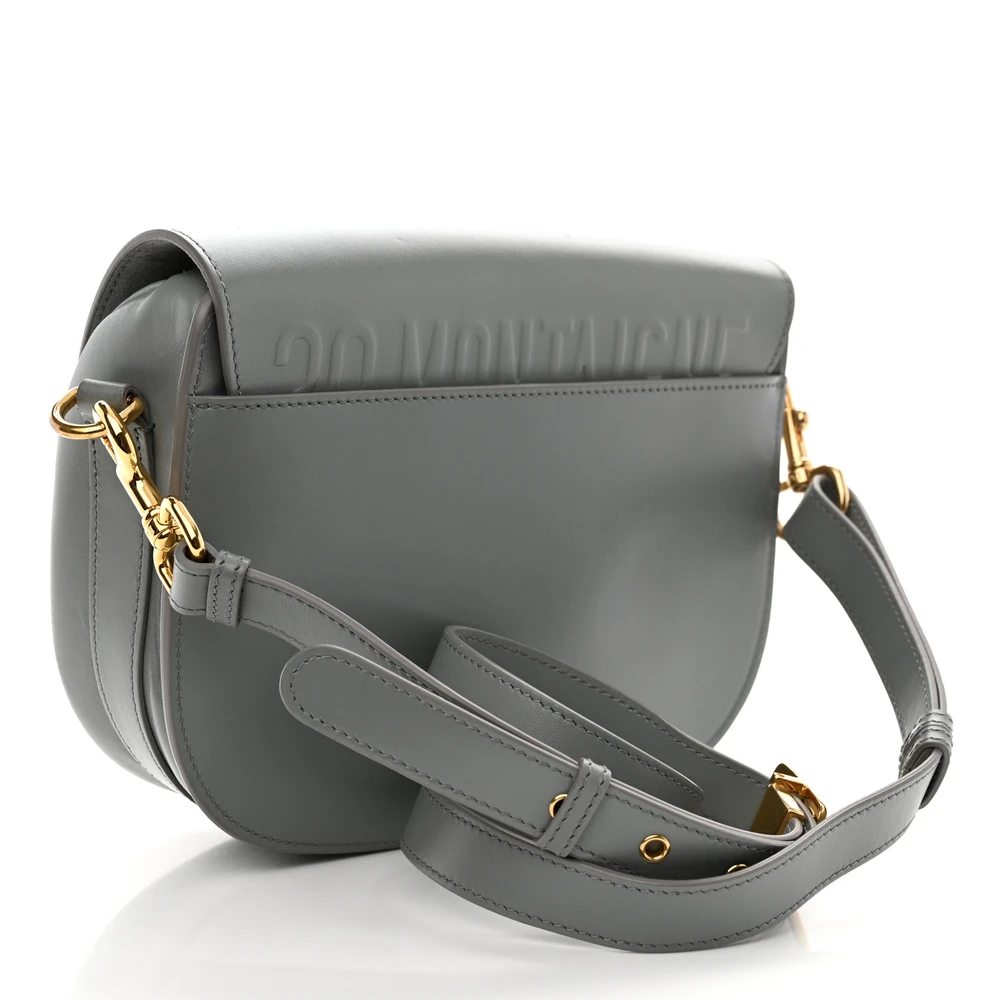 DIOR MEDIUM BOBBY FLAP BAG GREY BOX CALFSKIN LEATHER BRASS HARDWARE