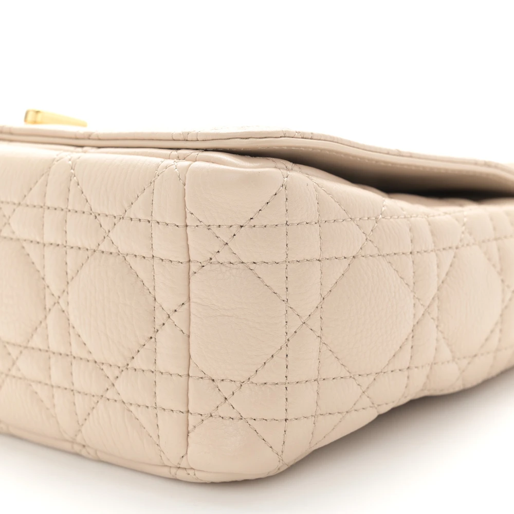 DIOR MEDIUM CARO BAG BEIGE SUPPLE CANNAGE CALFSKIN LEATHER GOLD HARDWARE