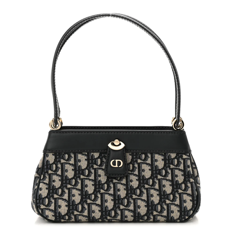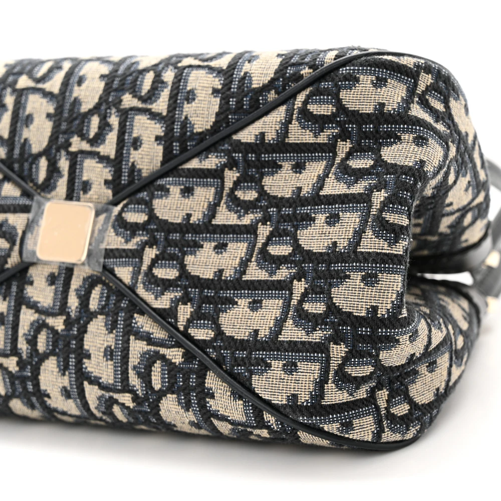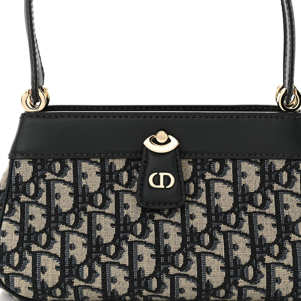 DIOR MEDIUM KEY BAG BLUE OBLIQUE CANVAS GOLD HARDWARE