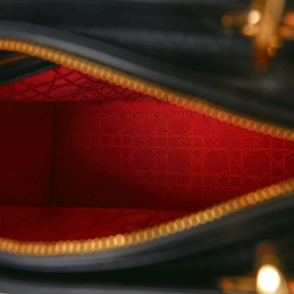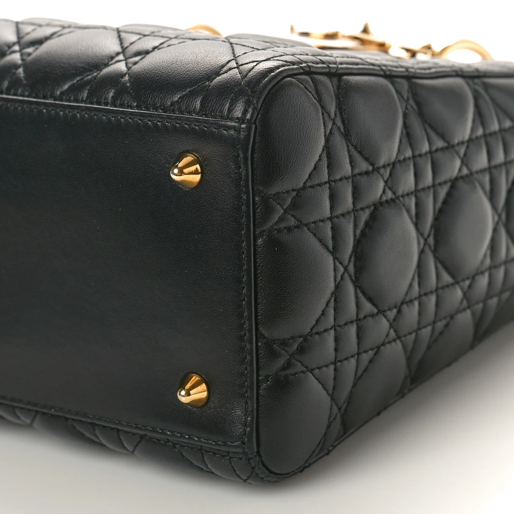 DIOR MEDIUM LADY DIOR BLACK CANNAGE LAMBSKIN LEATHER GOLD HARDWARE