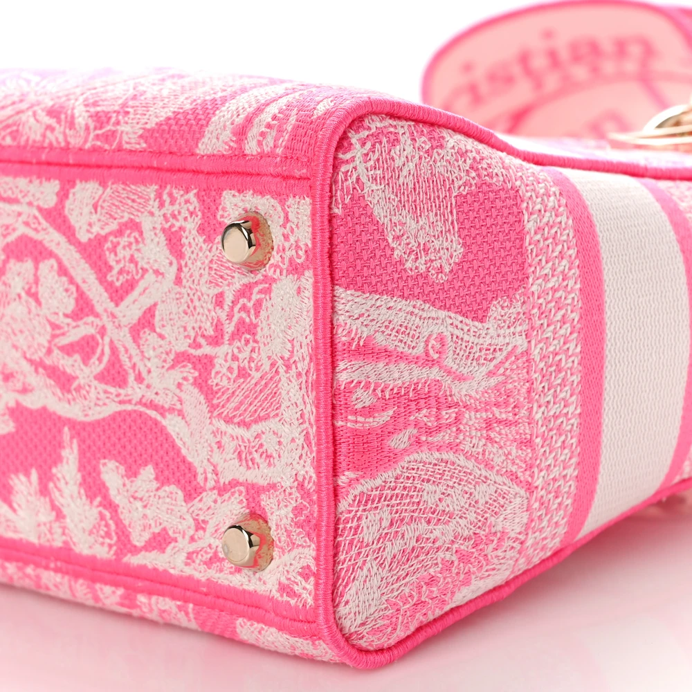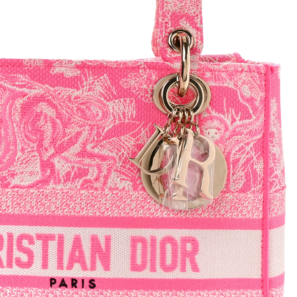 DIOR MEDIUM TOILE DE JOUY LADY D-LITE FLUORESCENT PINK REVERSE EMBROIDERED CANVAS GOLD HARDWARE