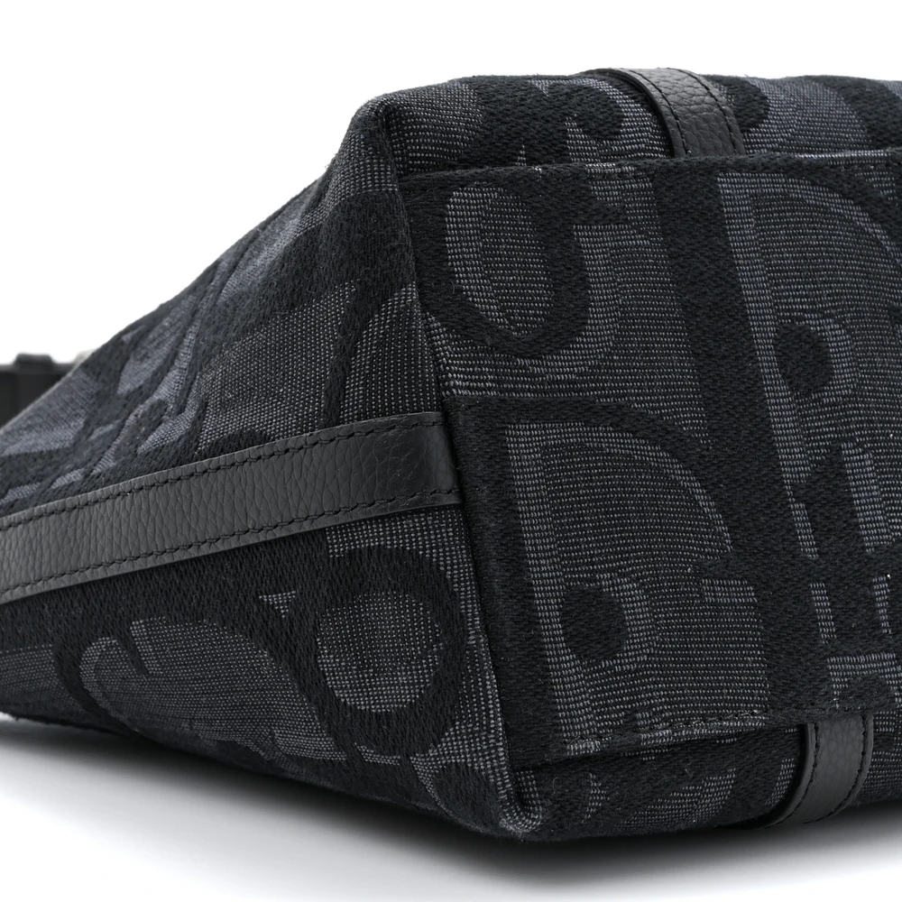 DIOR MEDIUM WEEKENDER 25 BAG BLACK MAXI OBLIQUE CANVAS RUTHENIUM HARDWARE