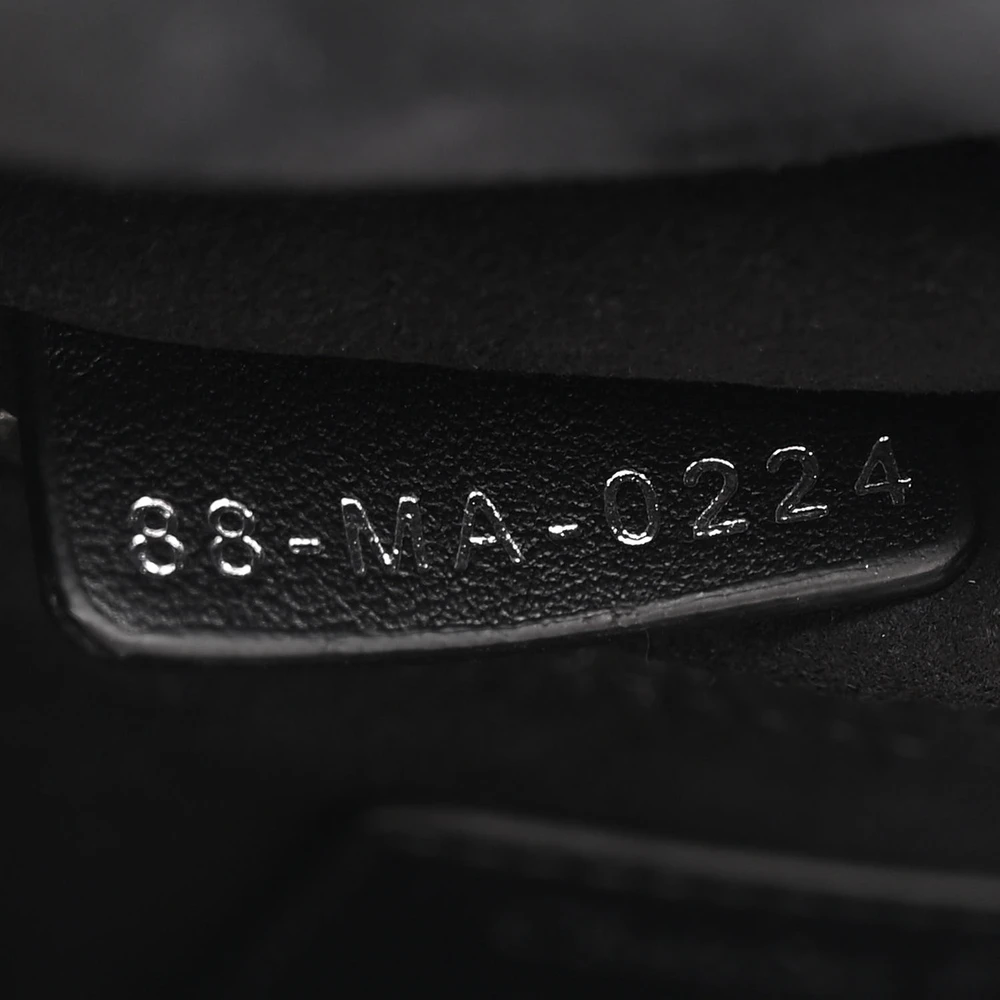 DIOR MINI LADY DIOR BLACK CANNAGE LAMBSKIN LEATHER SILVER HARDWARE