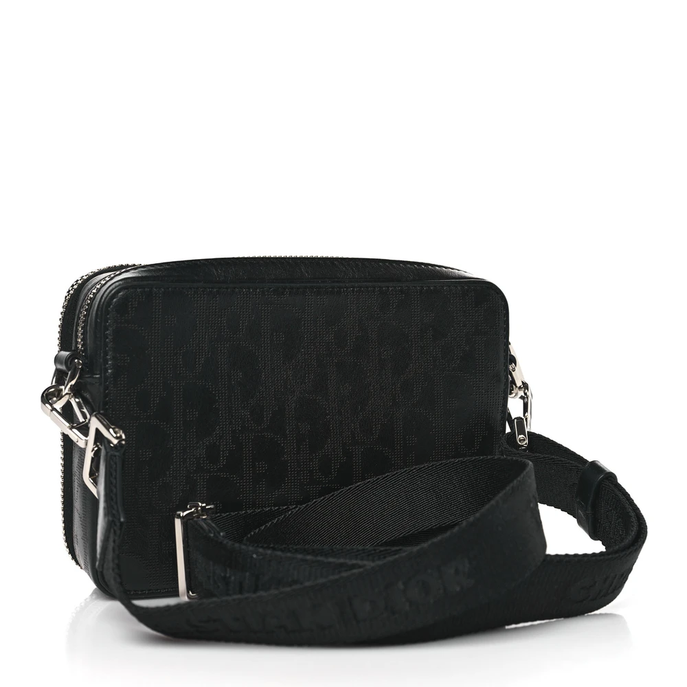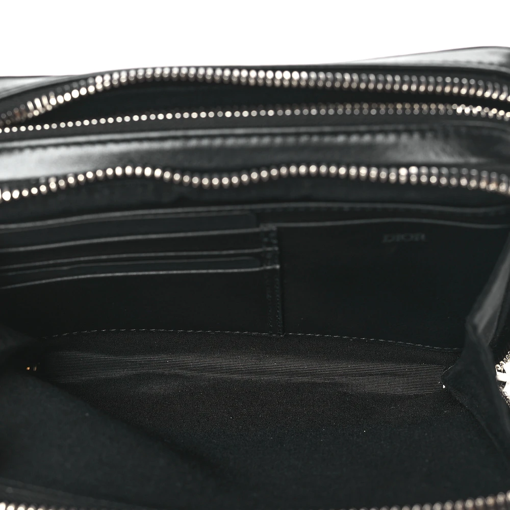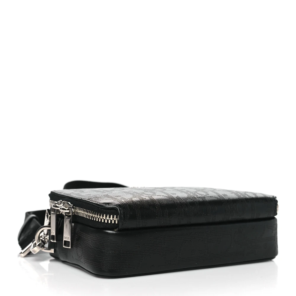 DIOR SMALL MESSENGER BLACK MULTICOLOR GALAXY PERFORATED OBLIQUE CALFSKIN LEATHER SILVER HARDWARE