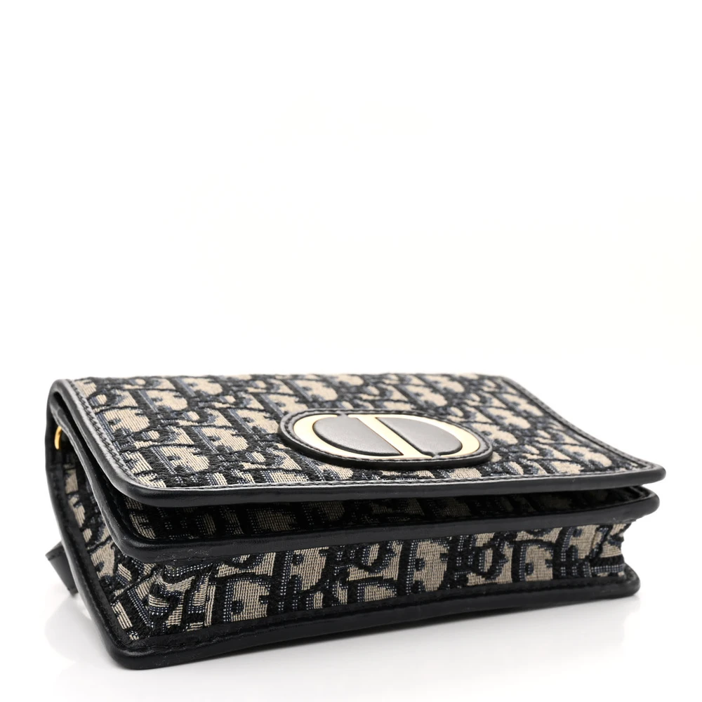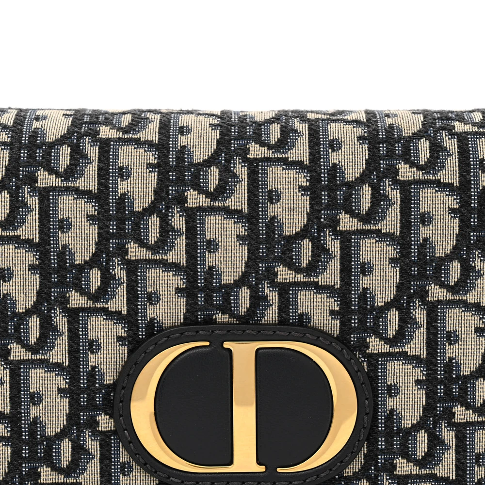 DIOR SMALL MONTAIGNE 30 2-IN-1 POUCH BLUE OBLIQUE CANVAS GOLD HARDWARE