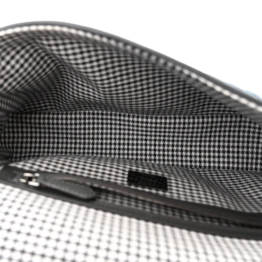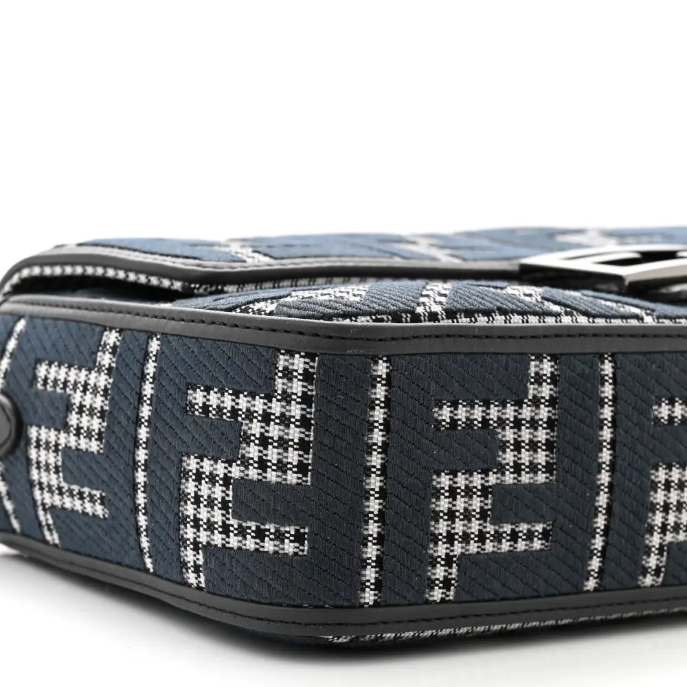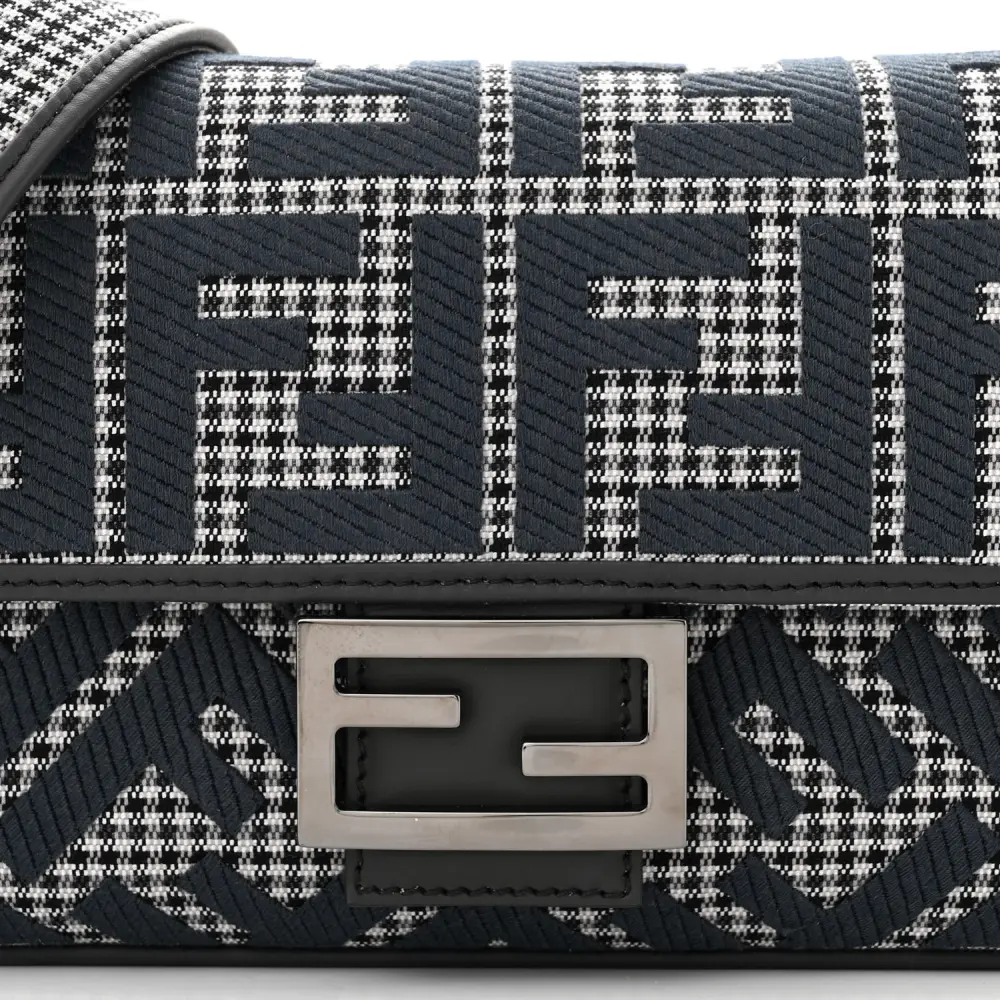 FENDI FF EMBROIDERED BAGUETTE GRIGIO / ANTHRACITE HOUNDSTOOTH WOOL & KING VITELLO LEATHER RUTHENIUM HARDWARE