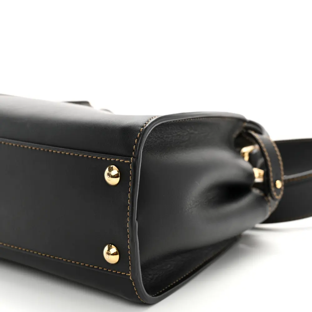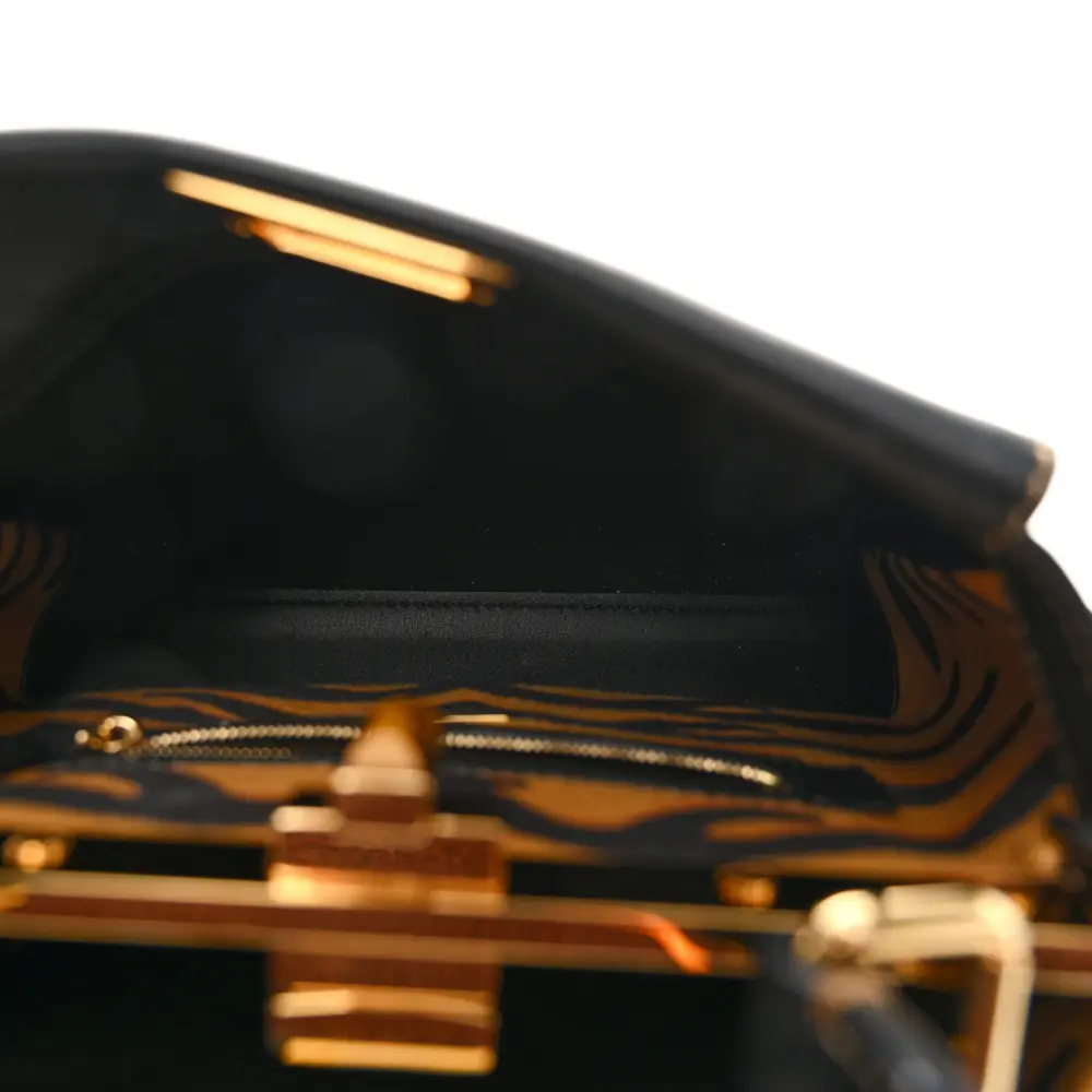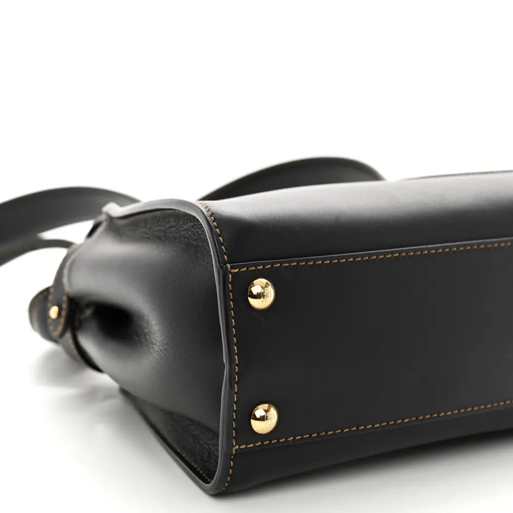 FENDI MINI CHINESE NEW YEAR TIGER EMBROIDERED PEEKABOO ICONIC SATCHEL BLACK / DARK YELLOW KING VITELLO LEATHER & CANVAS GOLD HARDWARE