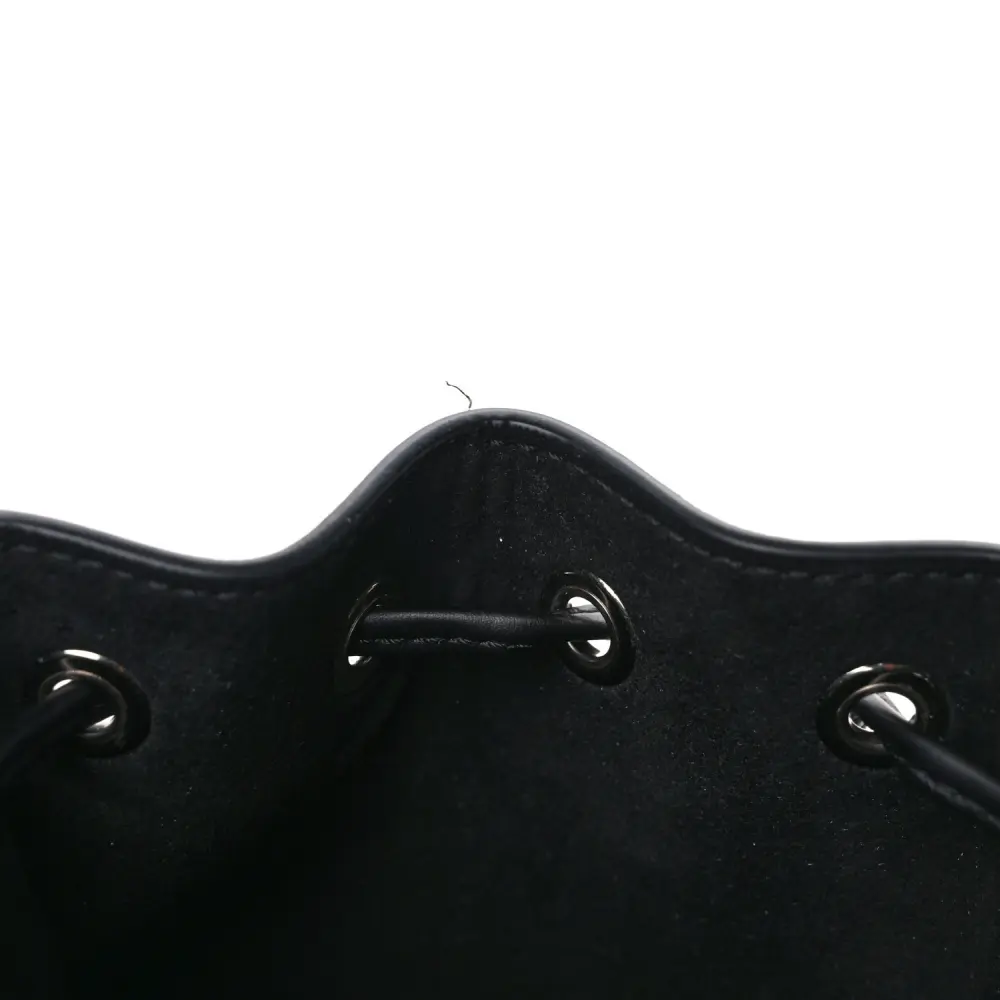 FENDI MINI F IS FENDI LOGO EMBOSSED MON TRESOR BUCKET BAG BLACK KING VITELLO LEATHER SILVER HARDWARE