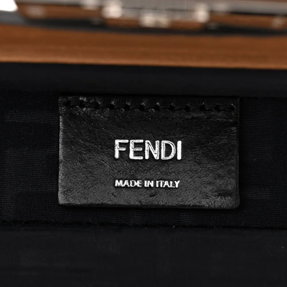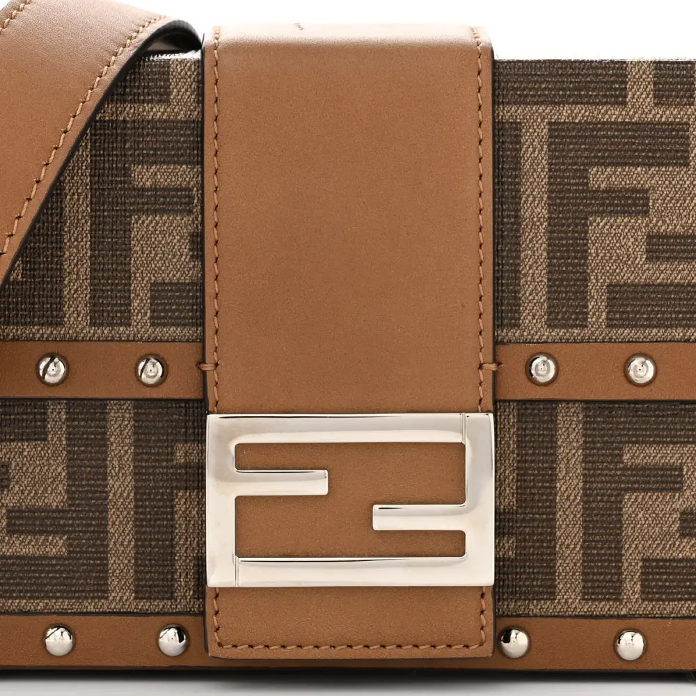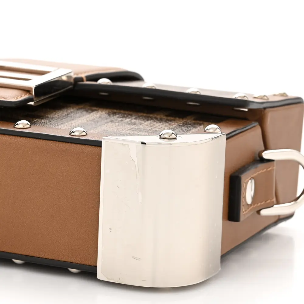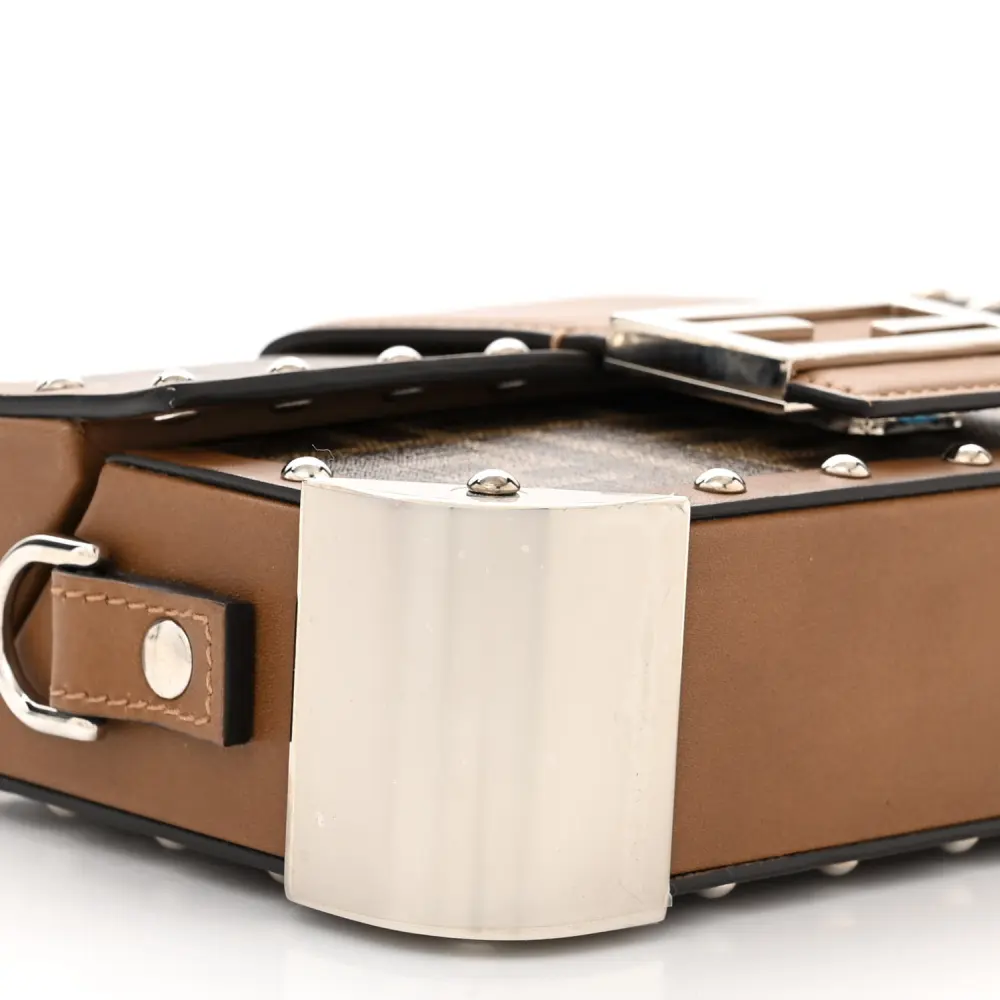 FENDI MINI FF 1974 BAGUETTE TRUNK MOGANO/PANNA/CUOIO SHINY GLAZED FABRIC & VACHETTA LEATHER SILVER HARDWARE