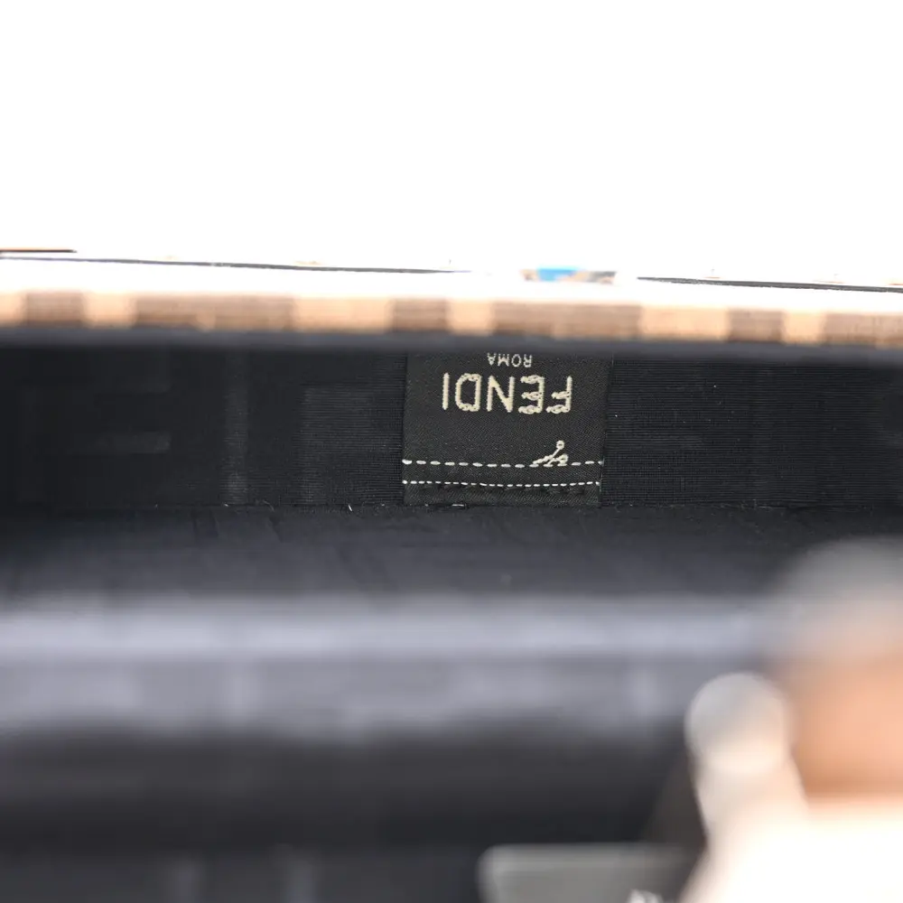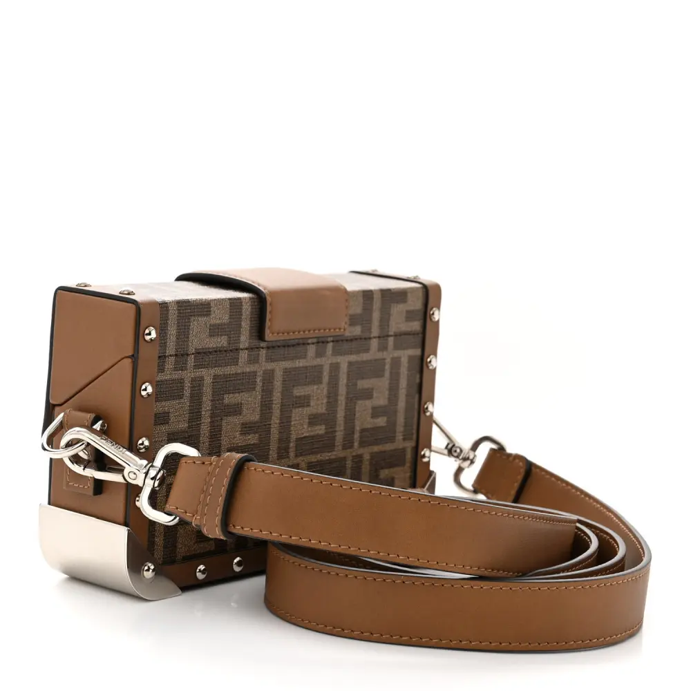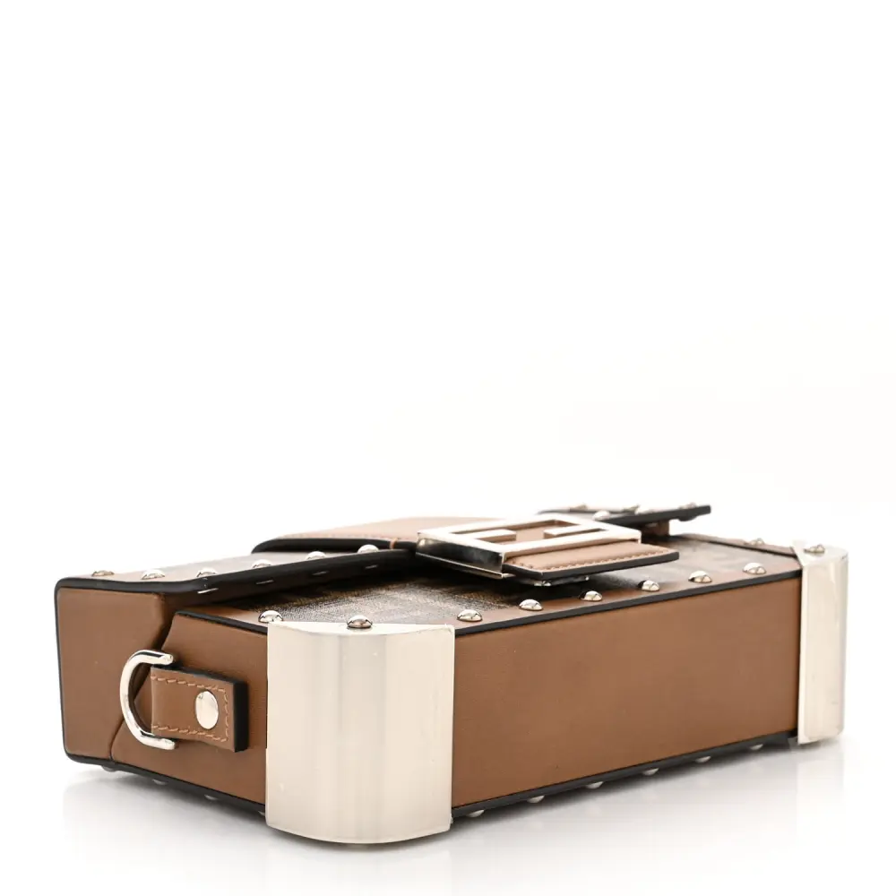 FENDI MINI FF 1974 BAGUETTE TRUNK MOGANO/PANNA/CUOIO SHINY GLAZED FABRIC & VACHETTA LEATHER SILVER HARDWARE