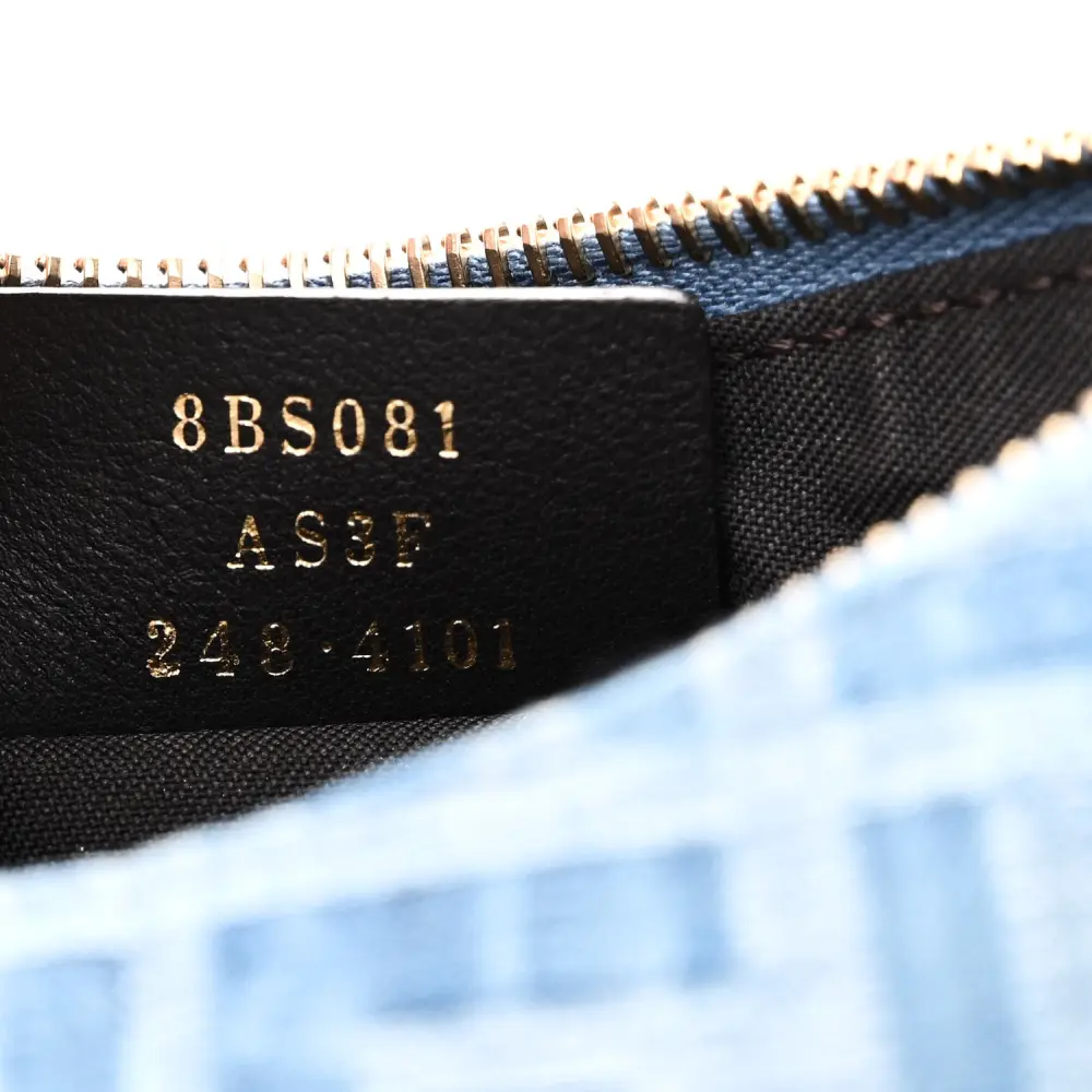 FENDI MINI FF EMBROIDERED FENDIGRAPHY HOBO BAG BLUE/SAND DENIM & KING VITELLO LEATHER GOLD HARDWARE