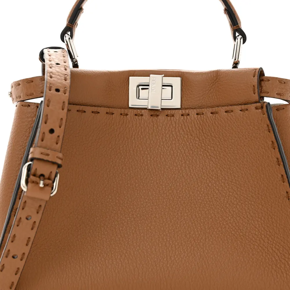FENDI MINI PEEKABOO ICONIC SATCHEL MOU/MILK BI-COLOR CUOIO ROMANO SELLERIA LEATHER SILVER HARDWARE