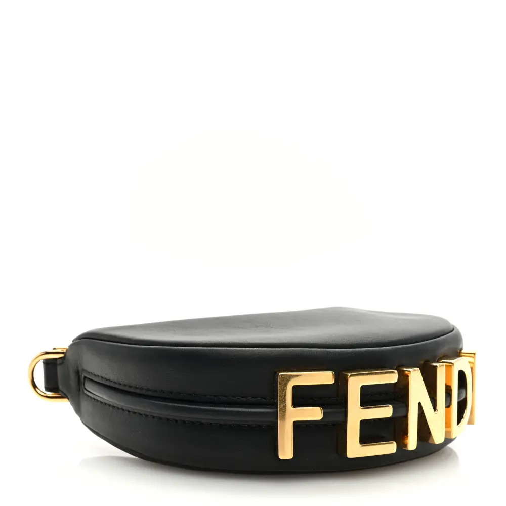 FENDI NANO FENDIGRAPHY HOBO CHARM BLACK MATTE GRACE VITELLO LEATHER GOLD HARDWARE