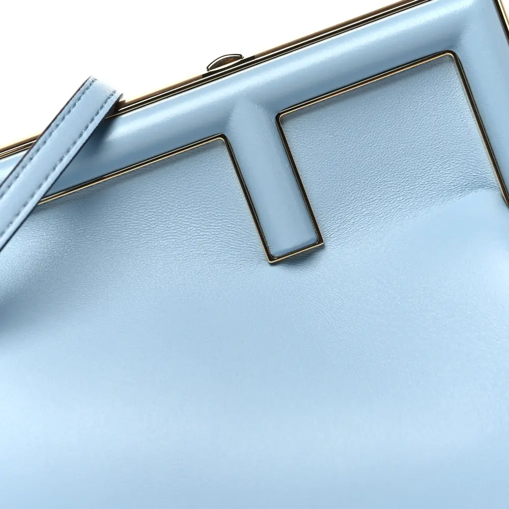 FENDI SMALL FENDI FIRST AZZURRO BABY SHINY NAPPA LEATHER GOLD HARDWARE