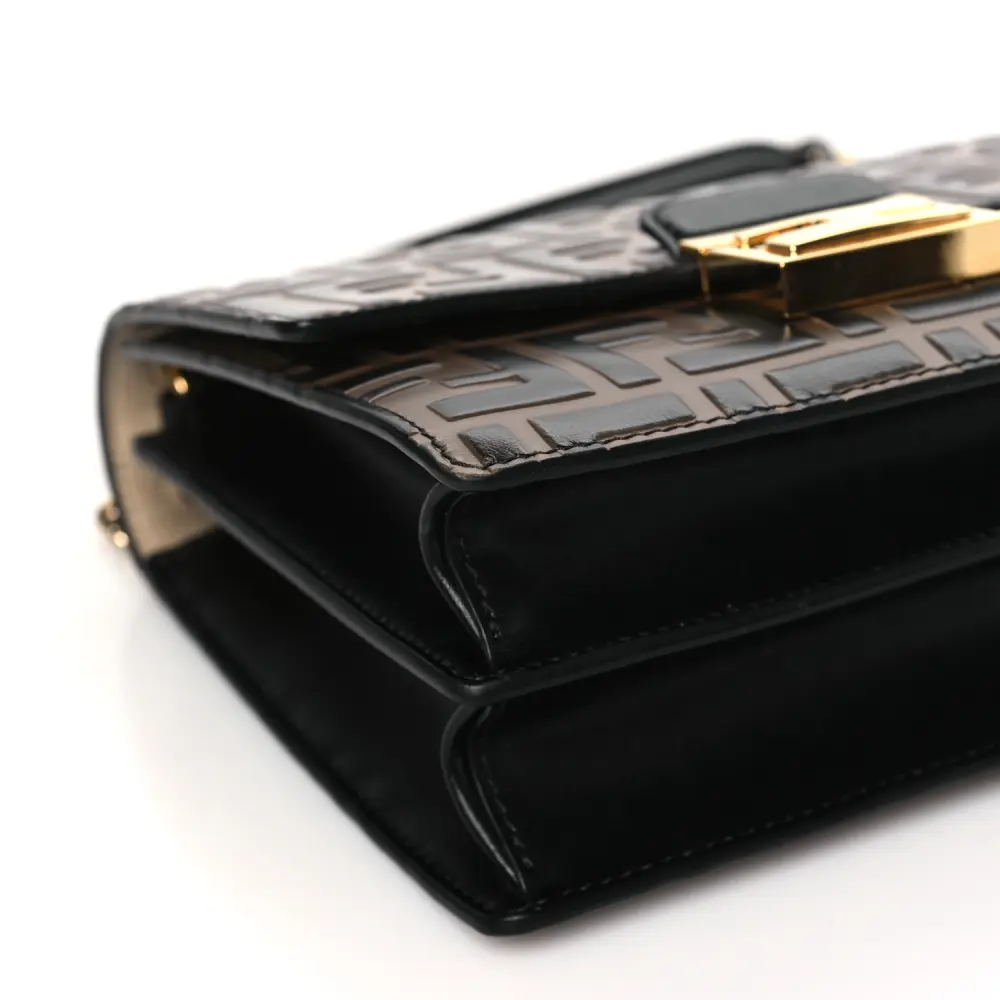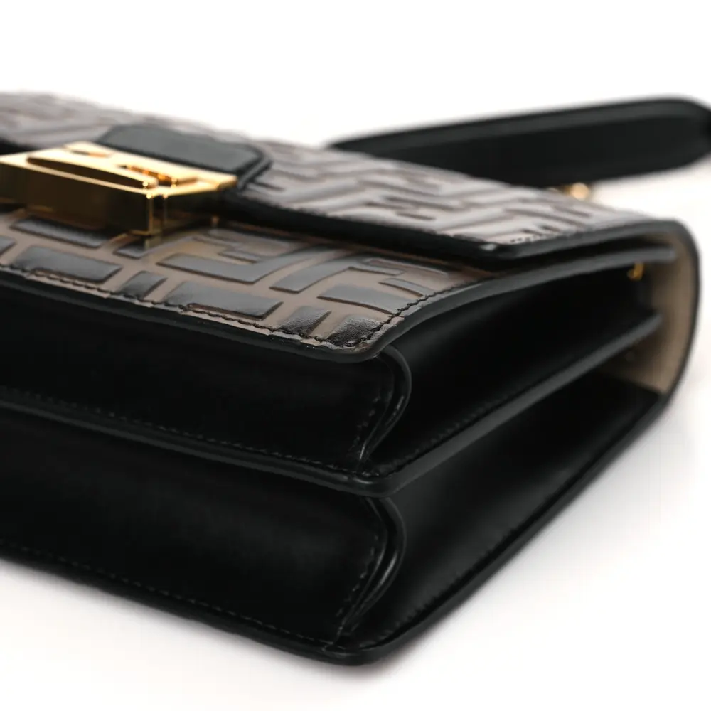 FENDI SMALL FF 1974 EMBOSSED KAN U SHOULDER BAG MAYA/BLACK BI-COLOR LIBERTY VITELLO LEATHER GOLD HARDWARE