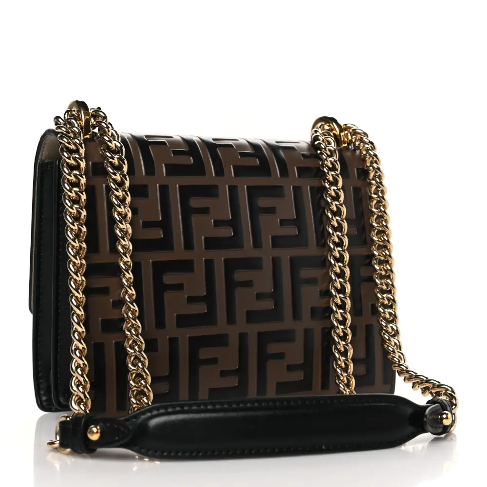 FENDI SMALL FF 1974 EMBOSSED KAN U SHOULDER BAG MAYA/BLACK BI-COLOR LIBERTY VITELLO LEATHER GOLD HARDWARE