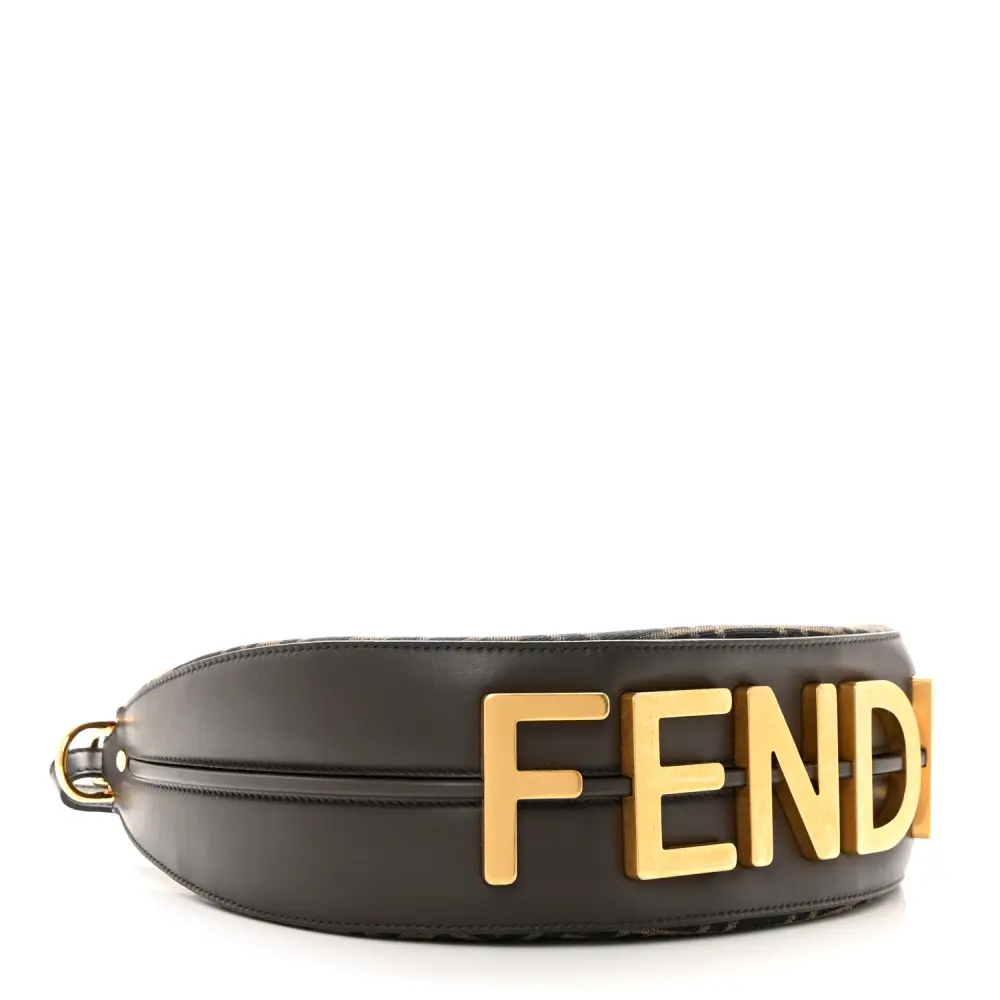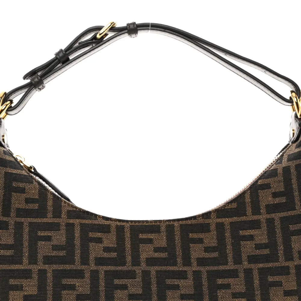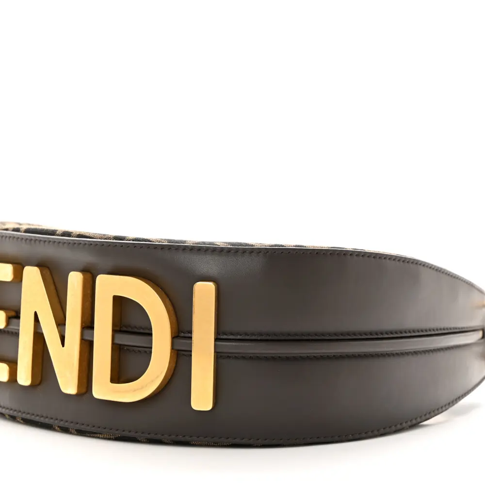 FENDI SMALL FF 1974 FENDIGRAPHY HOBO BAG TOBACCO/MORO/EBANO JACQUARD FABRIC & GRACE VITELLO LEATHER GOLD HARDWARE