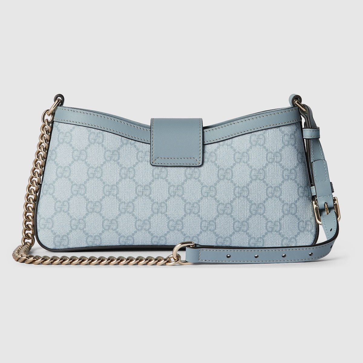 GUCCI SMALL DIAGONAL GG MARMONT CHAIN SHOULDER BAG BEIGE/BLACK GG MONOGRAM CANVAS & MATELASS?? LEATHER GOLD HARDWARE