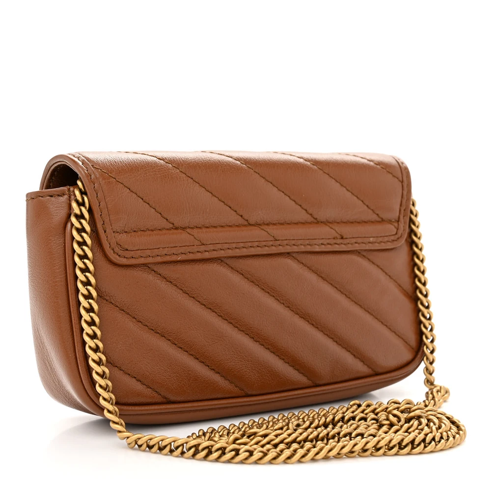 GUCCI DIAGONAL SUPER MINI GG MARMONT SHOULDER BAG AZALEA CALFSKIN MATELASS?? LEATHER GOLD HARDWARE