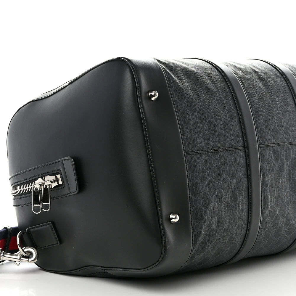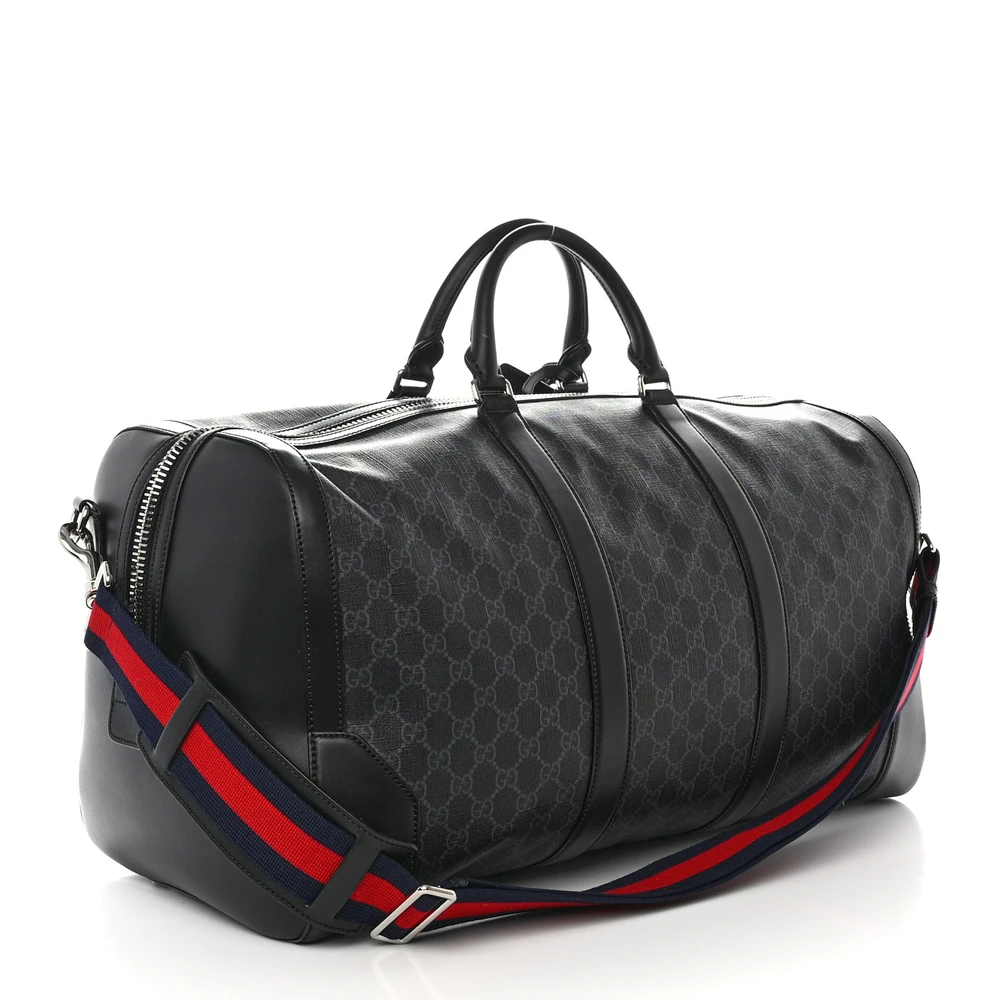 GUCCI LARGE CARRY-ON DUFFLE BAG BLACK/GREY SOFT GG SUPREME MONOGRAM CANVAS & APPIA CALFSKIN LEATHER