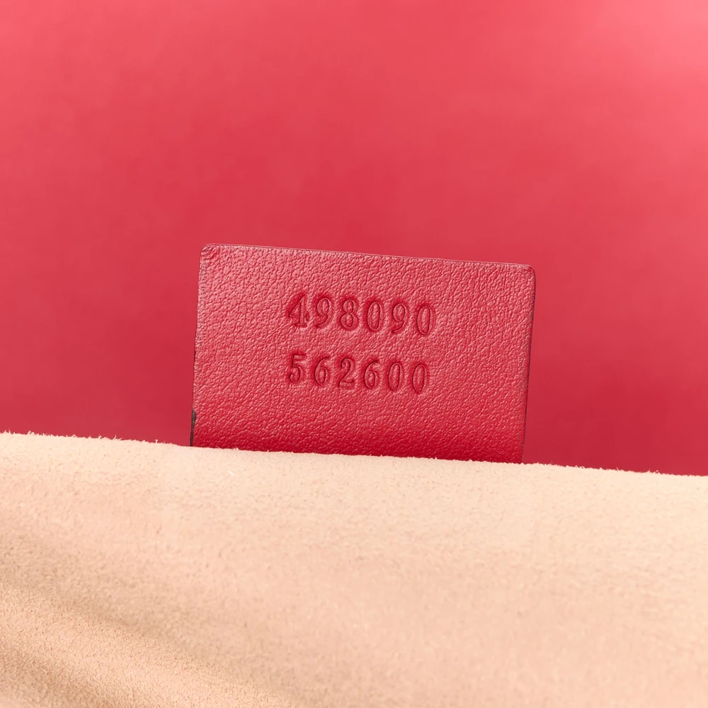 GUCCI LARGE GG MARMONT SHOULDER BAG HIBISCUS RED CALFSKIN MATELASS?? LEATHER AGED GOLD HARDWARE