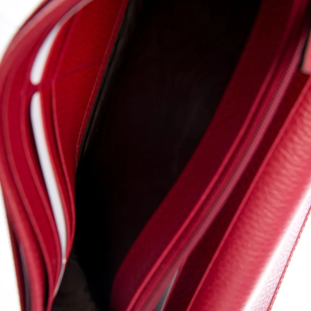 GUCCI LARGE INTERLOCKING G LOGO CONTINENTAL WALLET RED CALFSKIN LEATHER GOLD HARDWARE