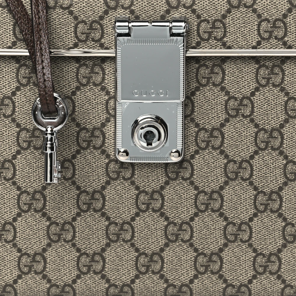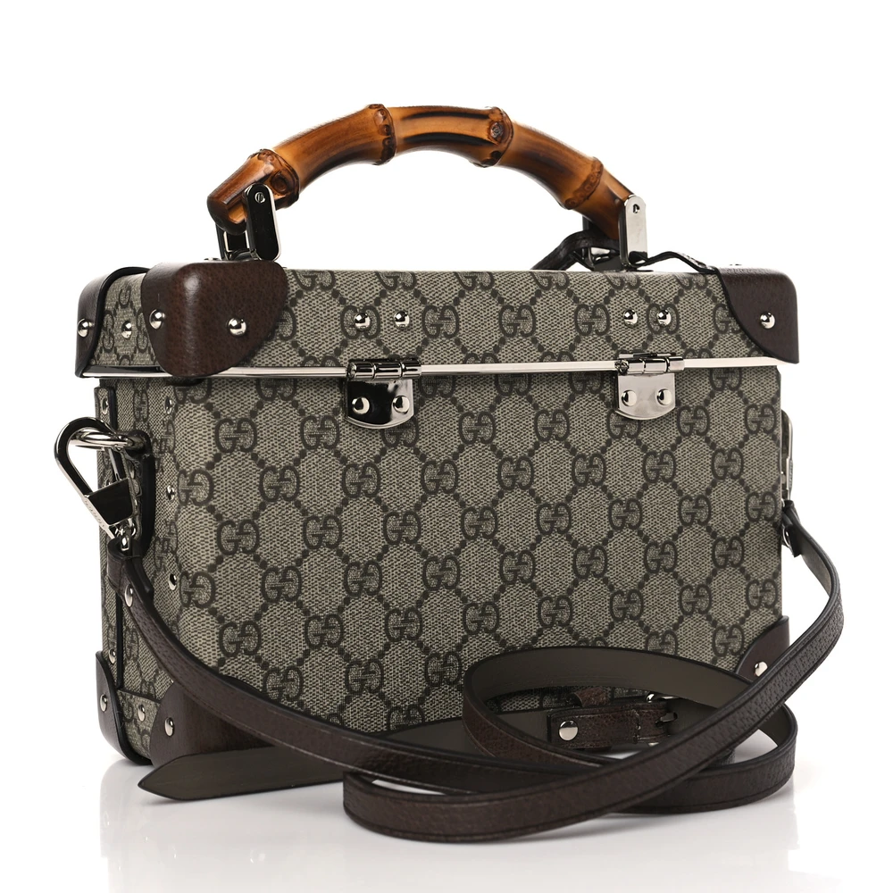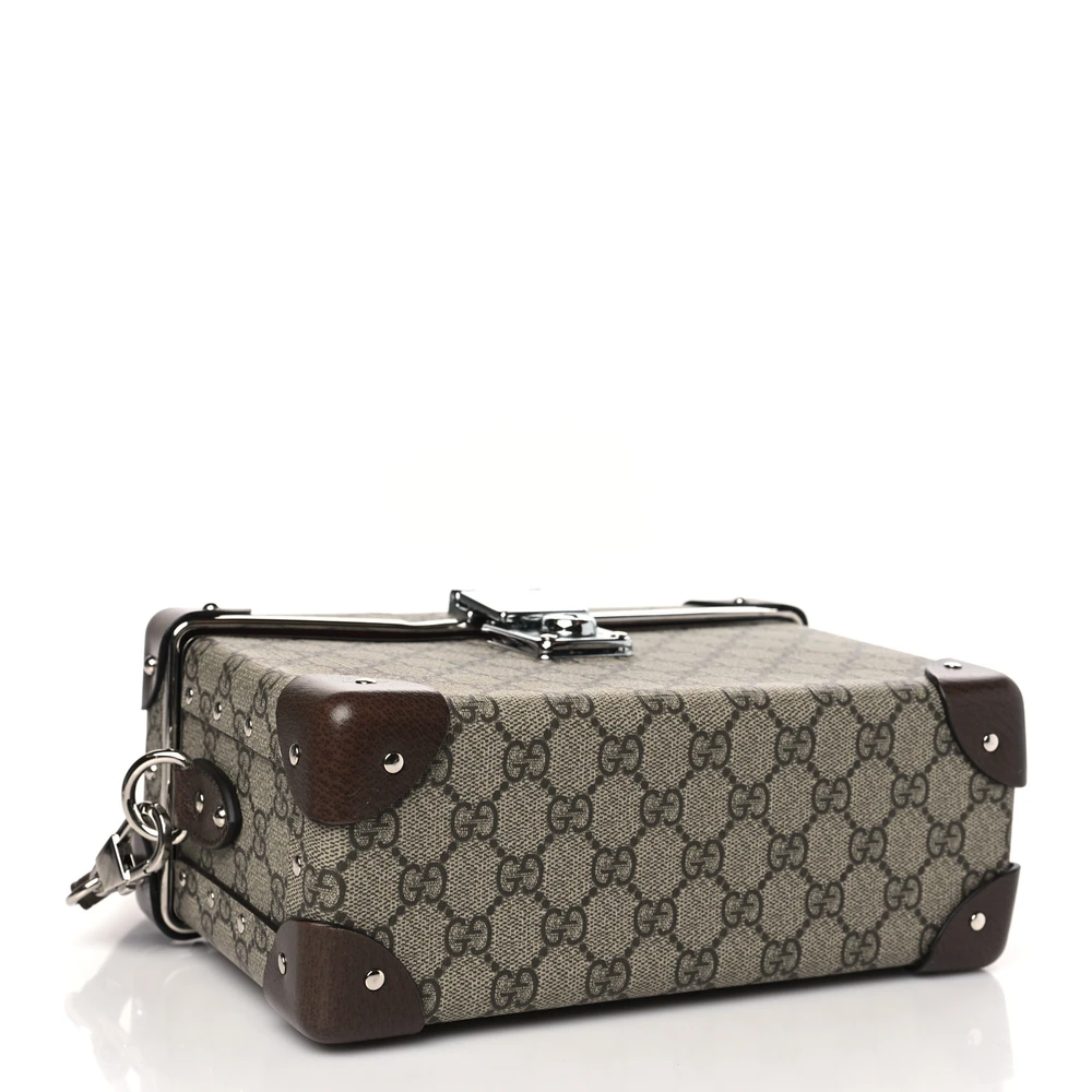 GUCCI MEDIUM GLOBE-TROTTER BEAUTY CASE BROWN GG SUPREME MONOGRAM CANVAS SILVER HARDWARE