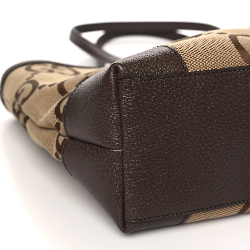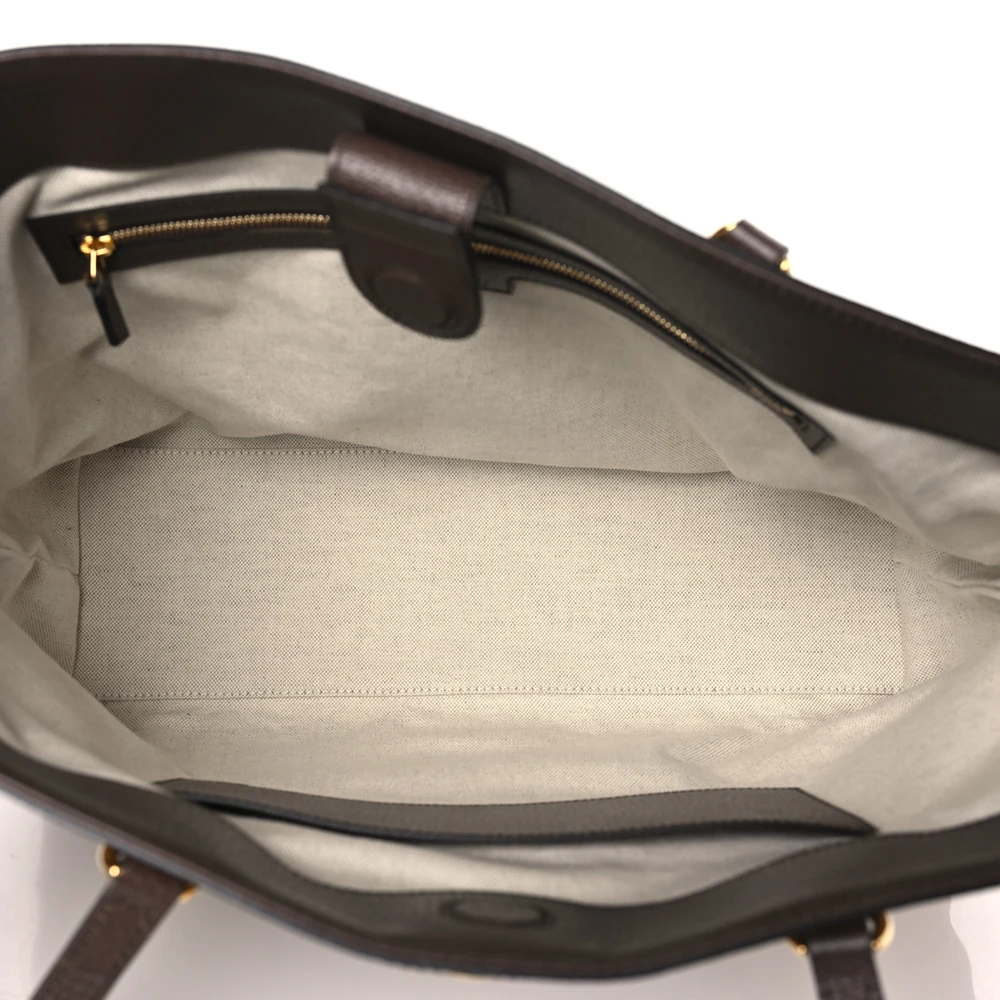 GUCCI MEDIUM OPHIDIA SHOPPING TOTE CAMEL EBONY TEXTURED DOLLAR CALFSKIN LEATHER