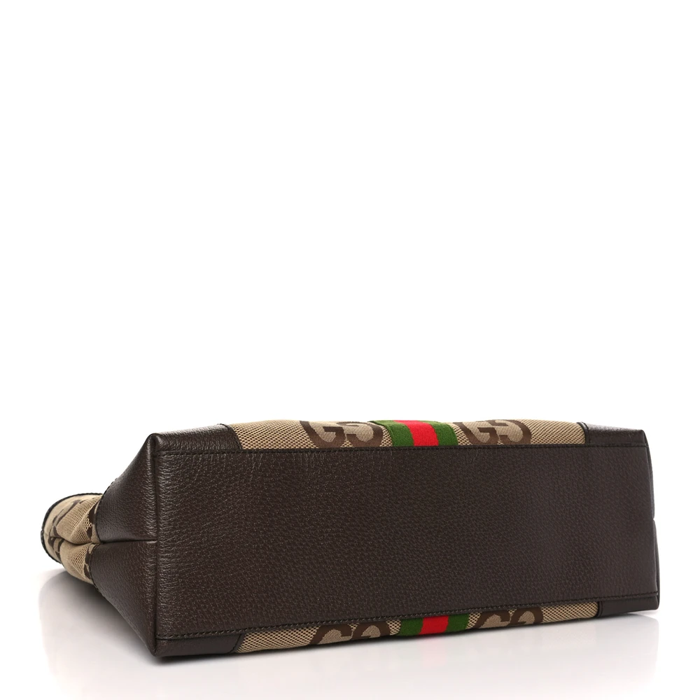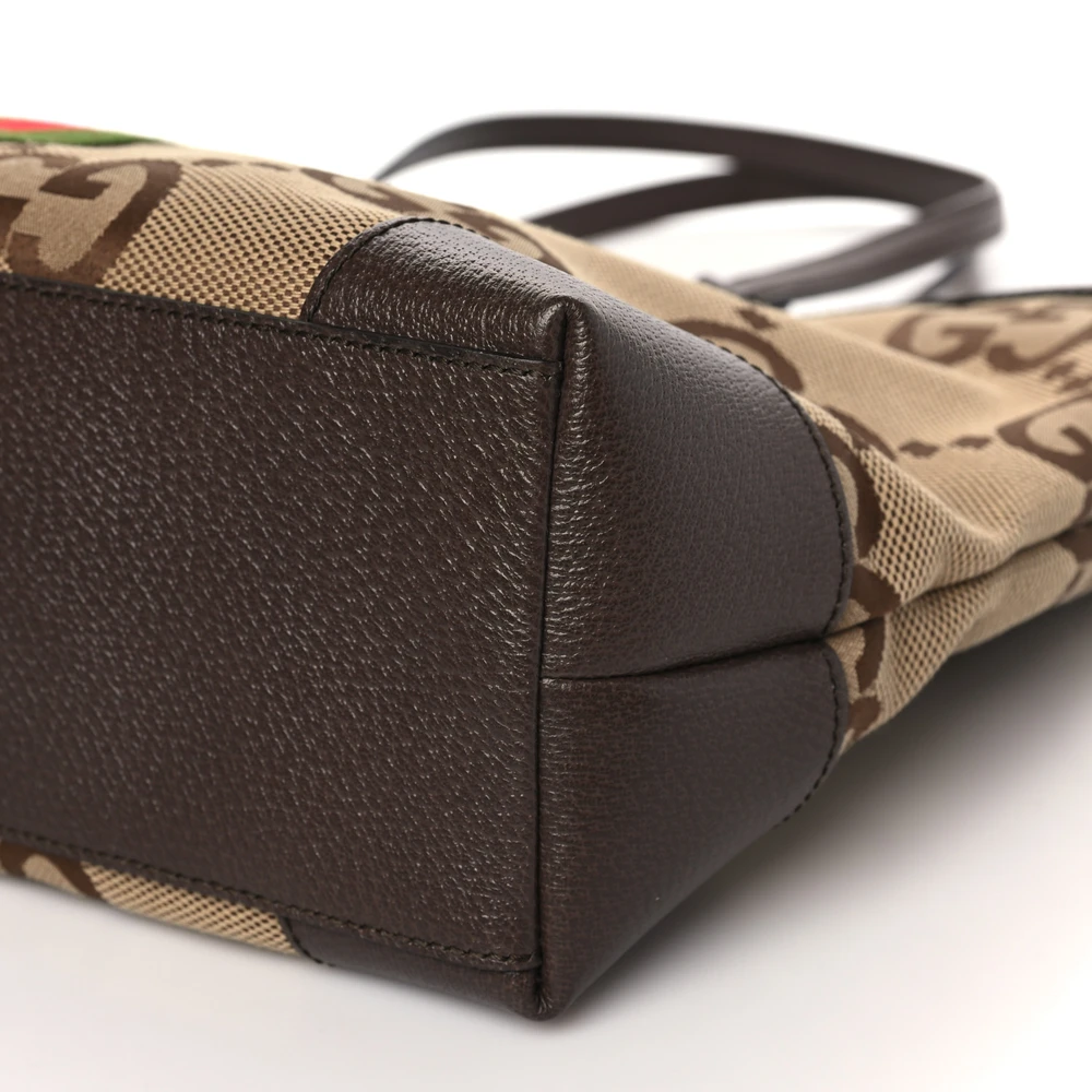 GUCCI MEDIUM OPHIDIA SHOPPING TOTE CAMEL EBONY TEXTURED DOLLAR CALFSKIN LEATHER