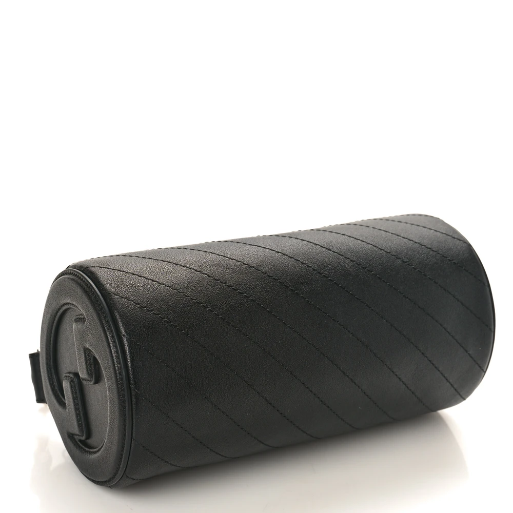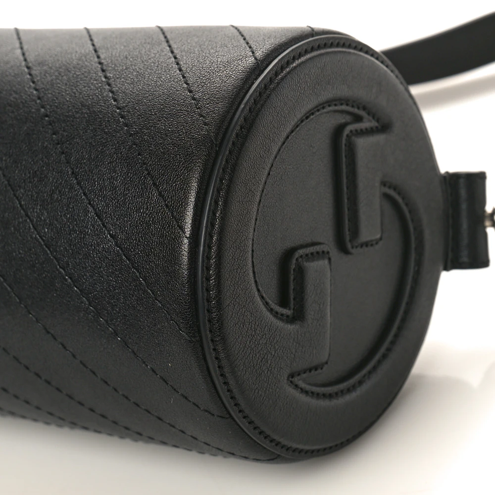 GUCCI MINI DIAGONAL STITCHED BLONDIE BARREL SHOULDER BAG BLACK SAKAI BE GREEN CALFSKIN LEATHER SILVER HARDWARE